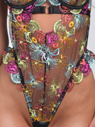 Bringen Sie Eleganz und Femininität in Ihre Lingerie-Kollektion mit diesem bestickten Bodysuit. Das zarte Mesh-Material, kombiniert mit filigranen Stickereien, sorgt für eine stilvolle Ausstrahlung und optimalen Tragekomfort. Perfekt für besondere Anlässe.