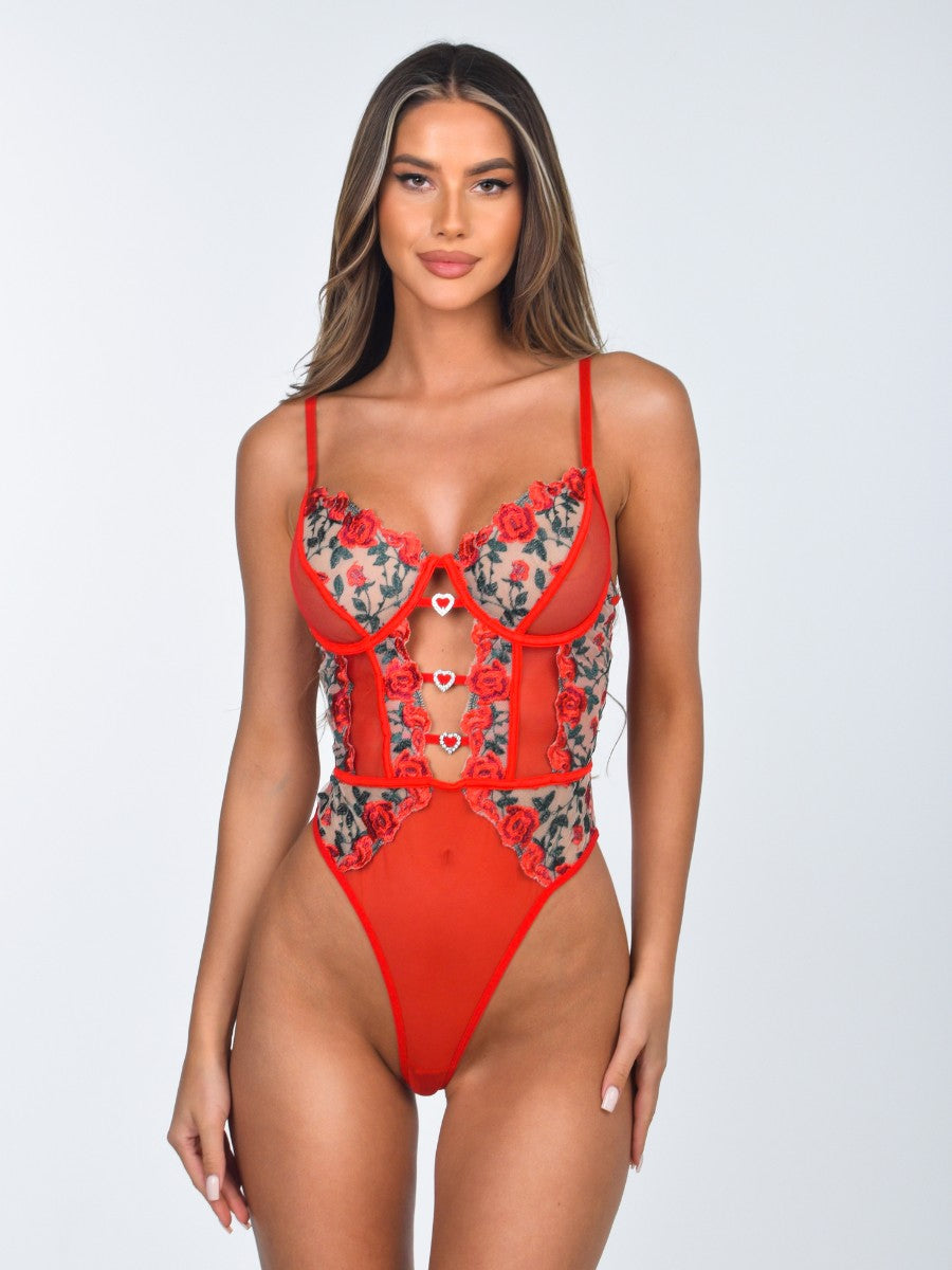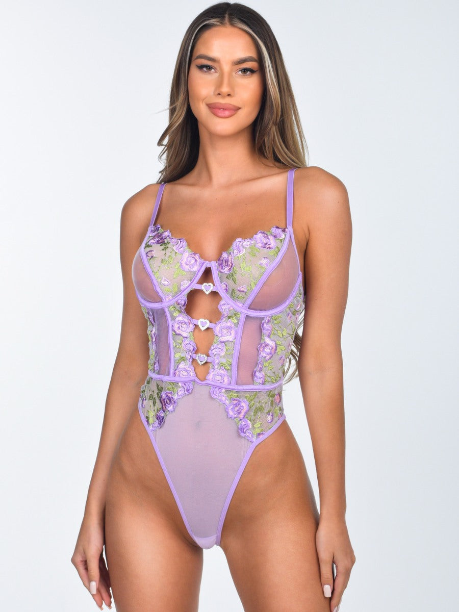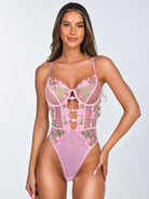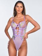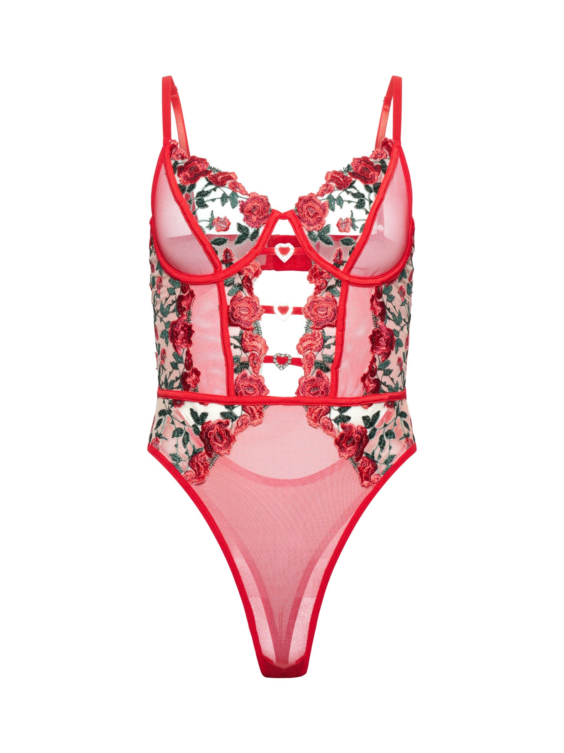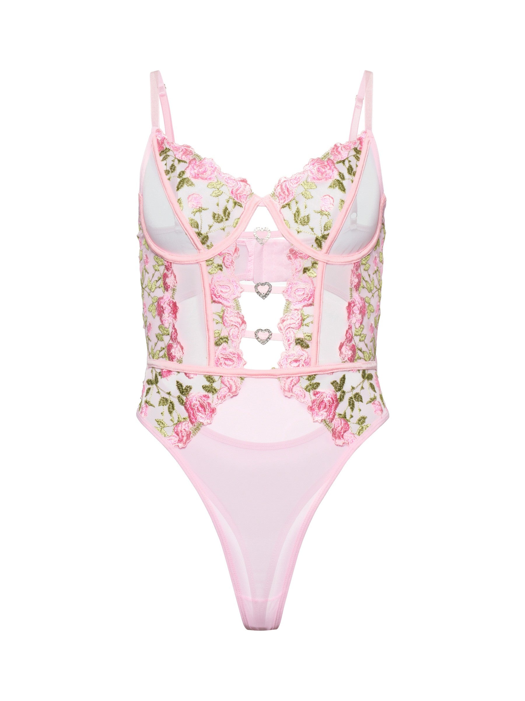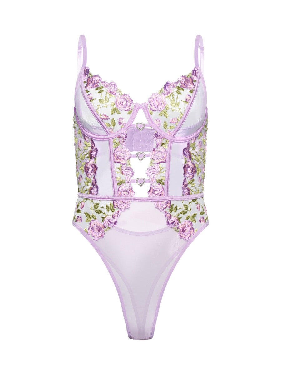 Zarter Stringbody aus floraler Stickerei und transparentem Mesh – betont die Silhouette stilvoll und bleibt dabei angenehm zu tragen. Ein Highlight für besondere Anlässe oder stilvolle Stunden zu zweit.