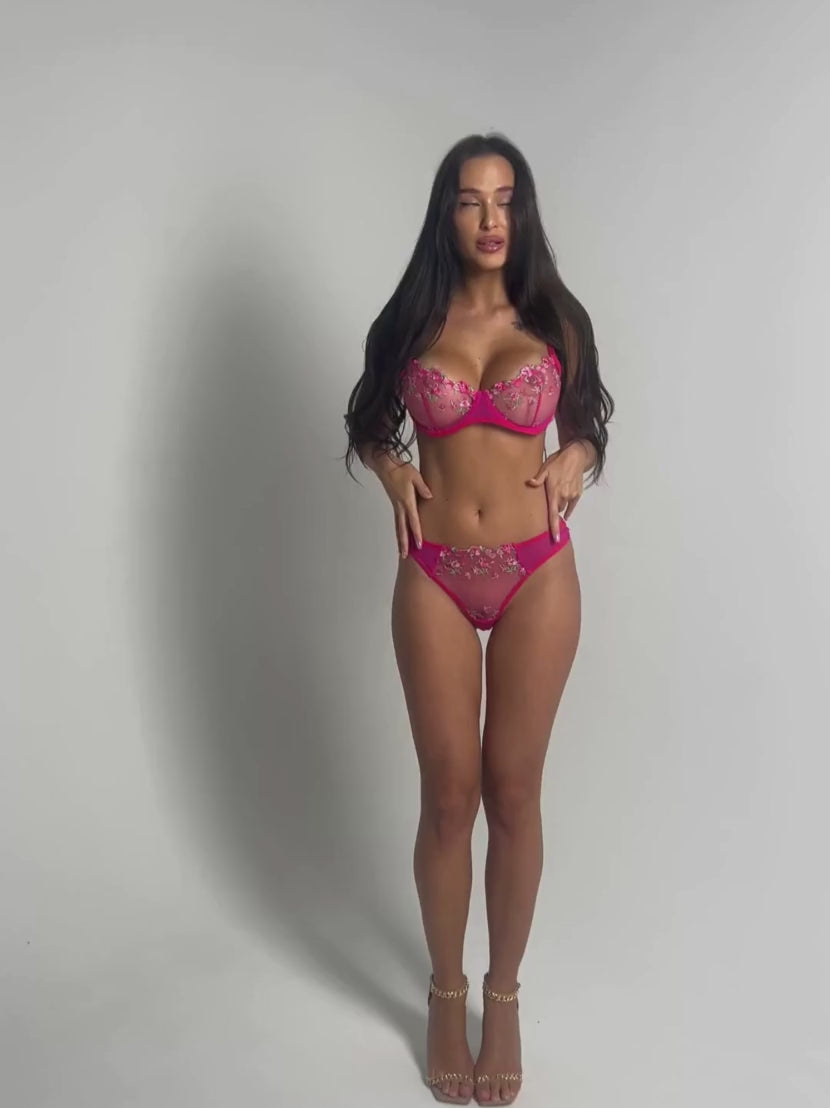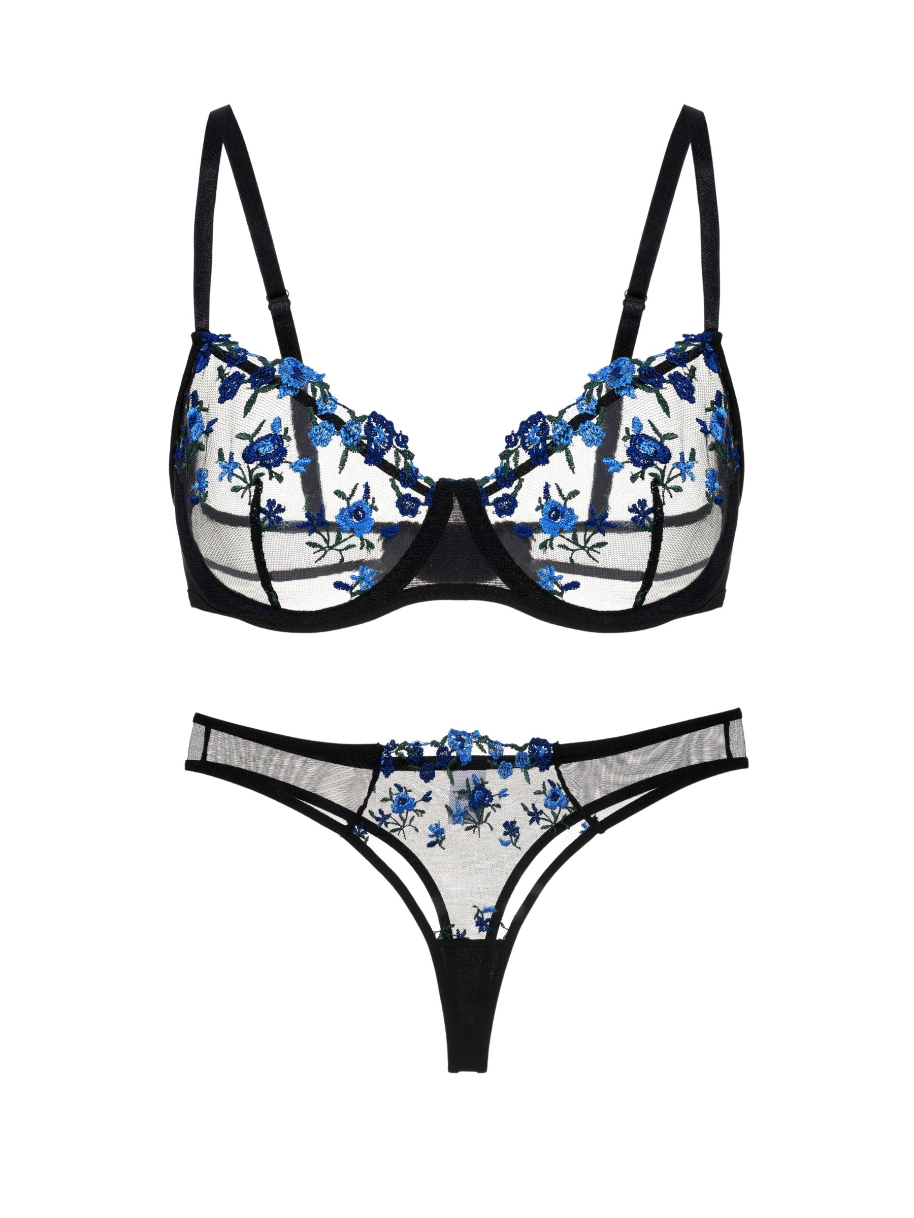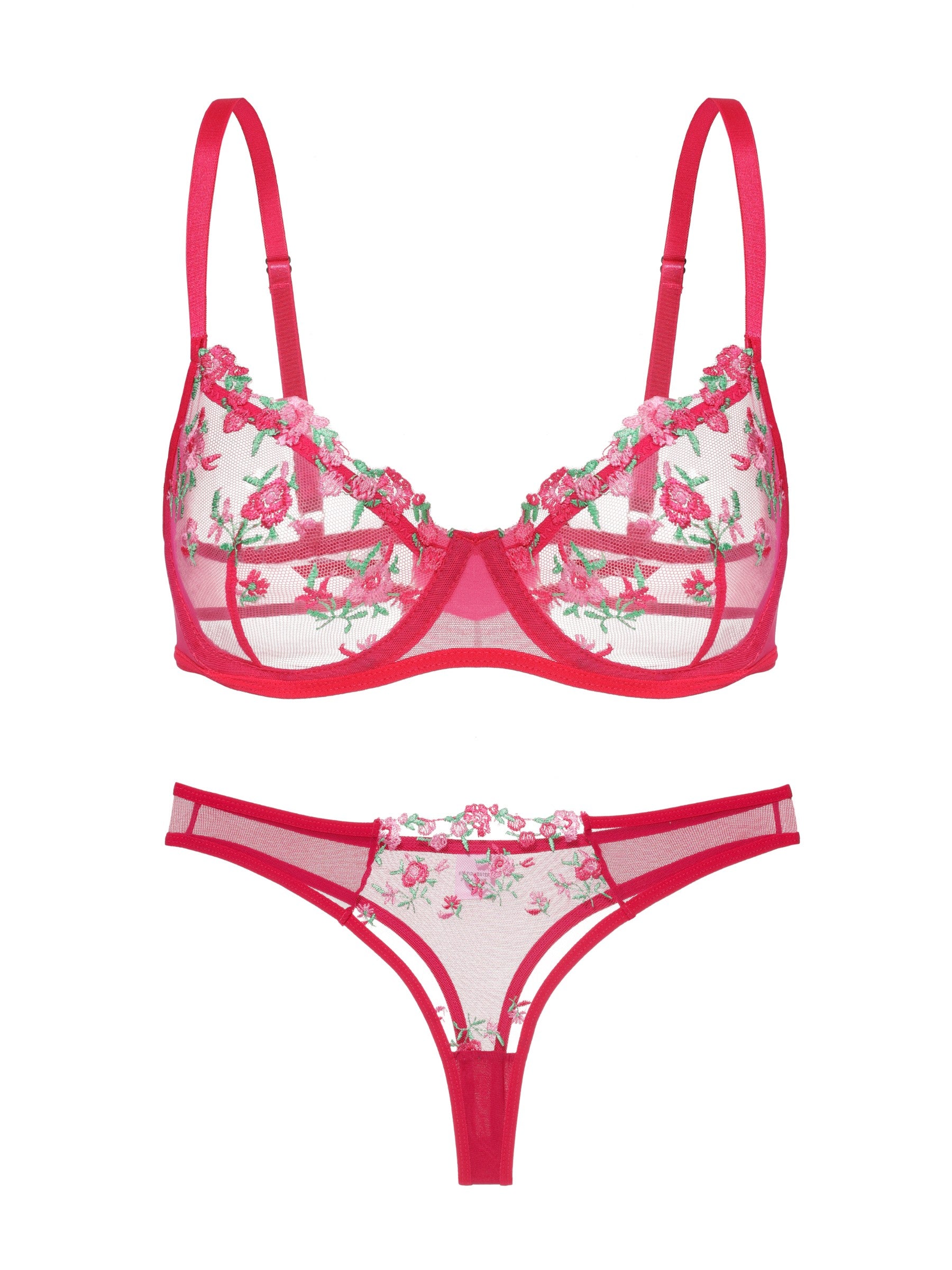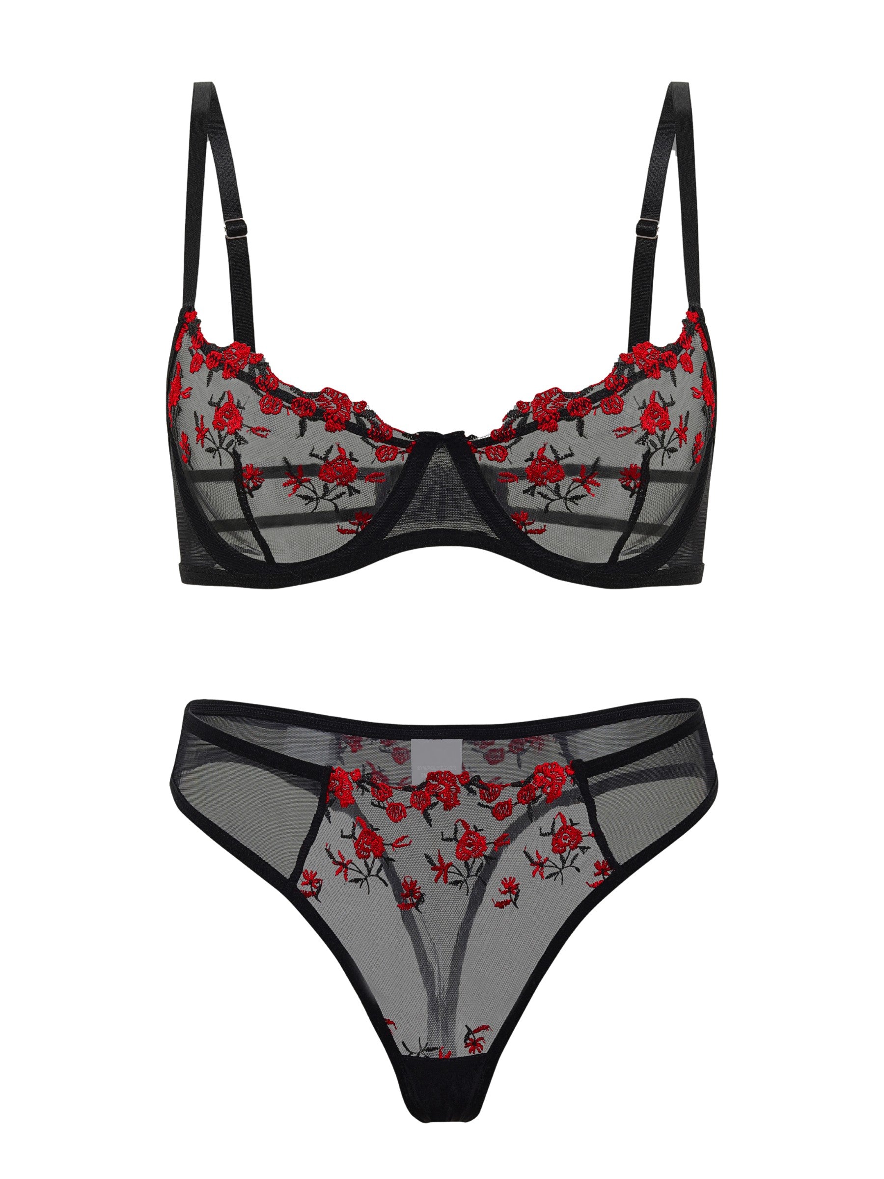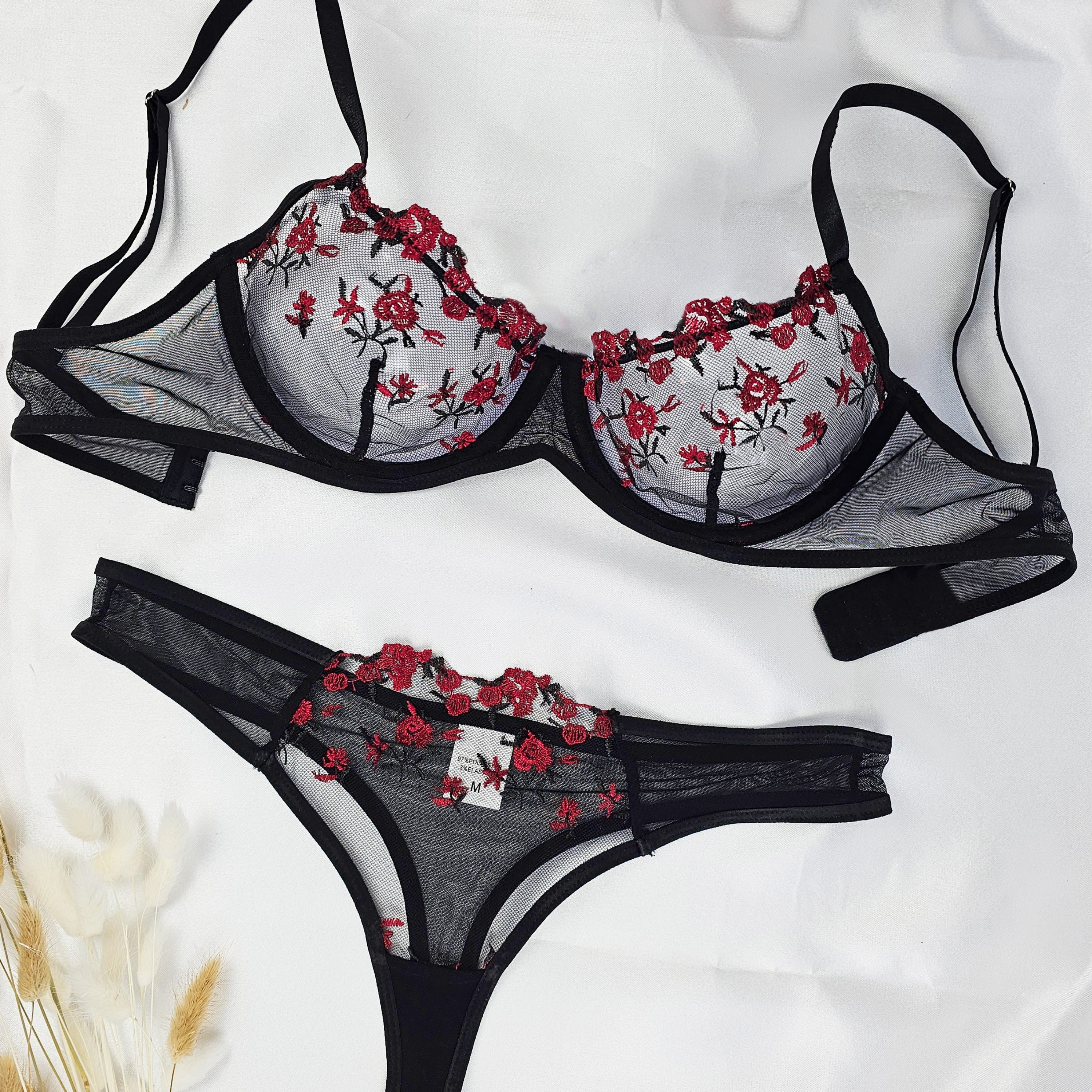 Entdecken Sie Eleganz und Komfort mit unserem bestickten Bügel-BH und passendem Tüll-Tanga. Dieses transparente Dessous-Set aus feinem Mesh mit zarter Blumenstickerei ist ideal für besondere Momente und verspricht einen atemberaubenden Look.