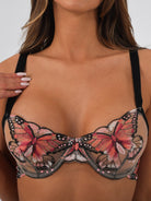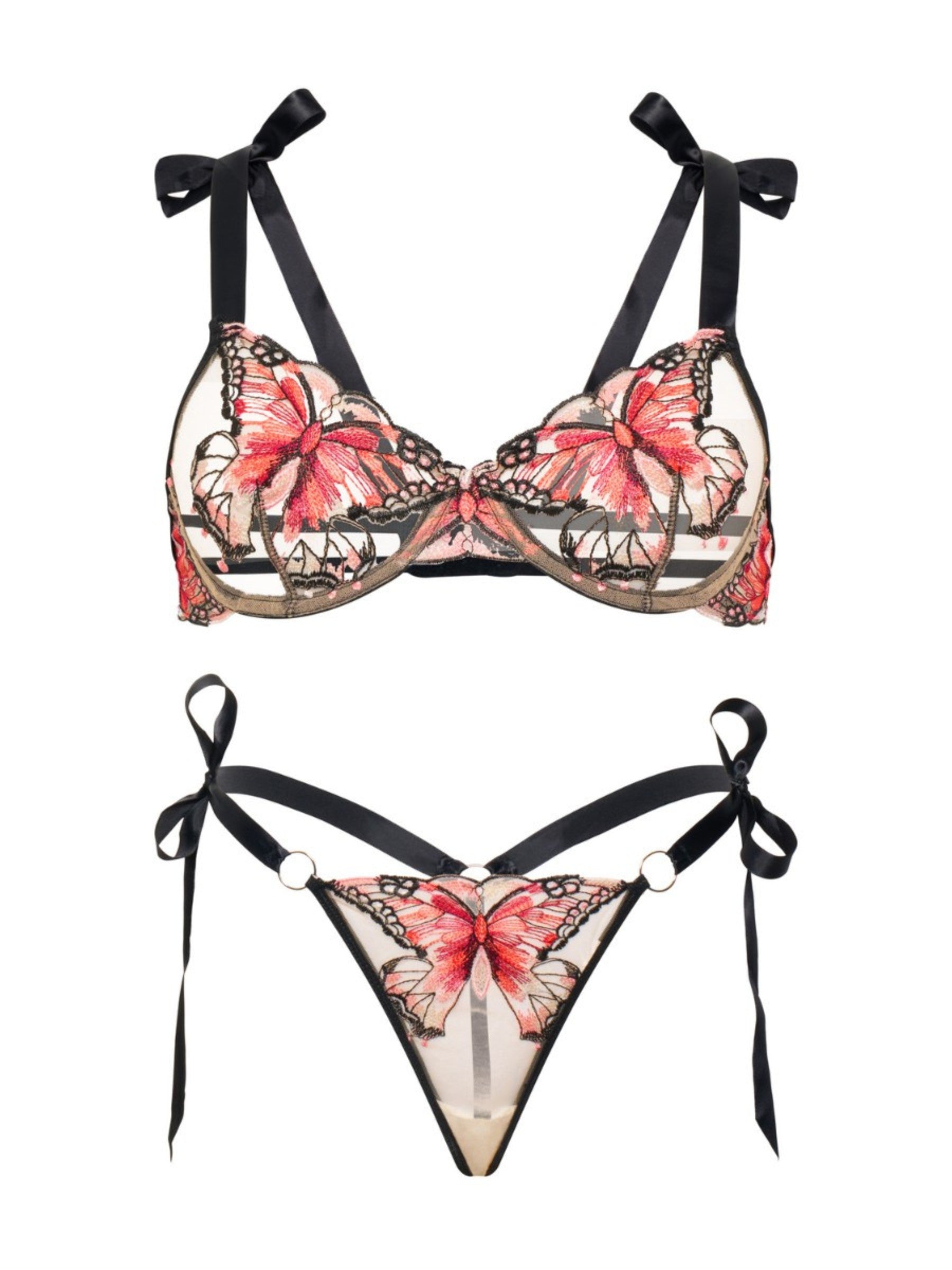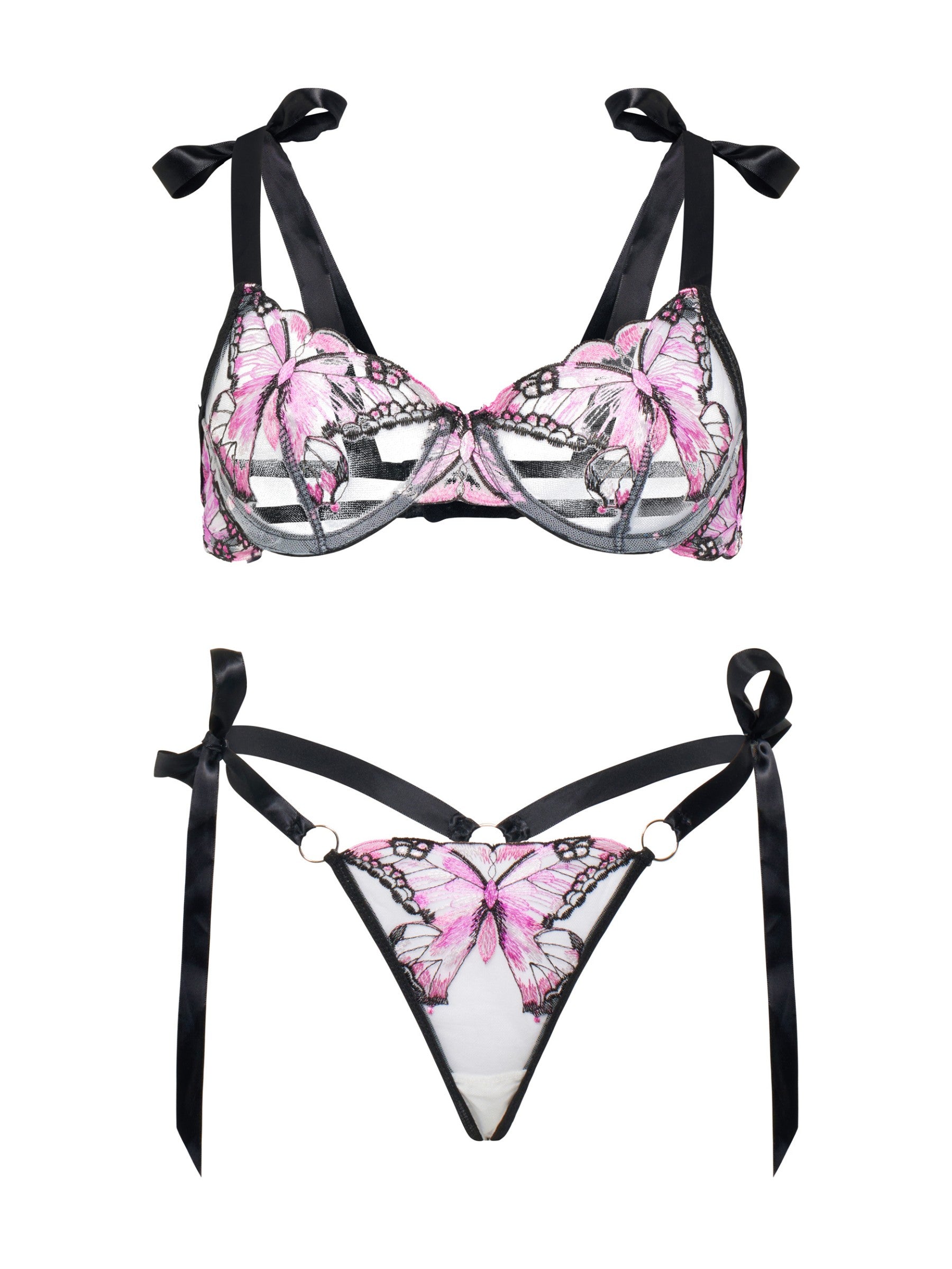 Feminines Dessous-Set mit besticktem Bügel-BH und Tanga. Die filigrane Spitze und die perfekte Passform bieten eine unwiderstehliche Kombination aus Eleganz und Komfort. Ideal für besondere Nächte oder als sinnliches Highlight.