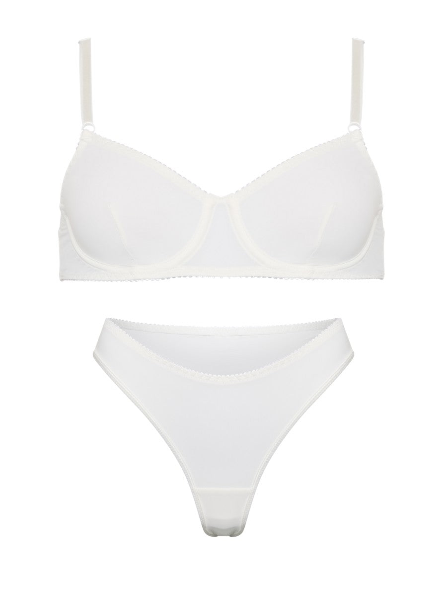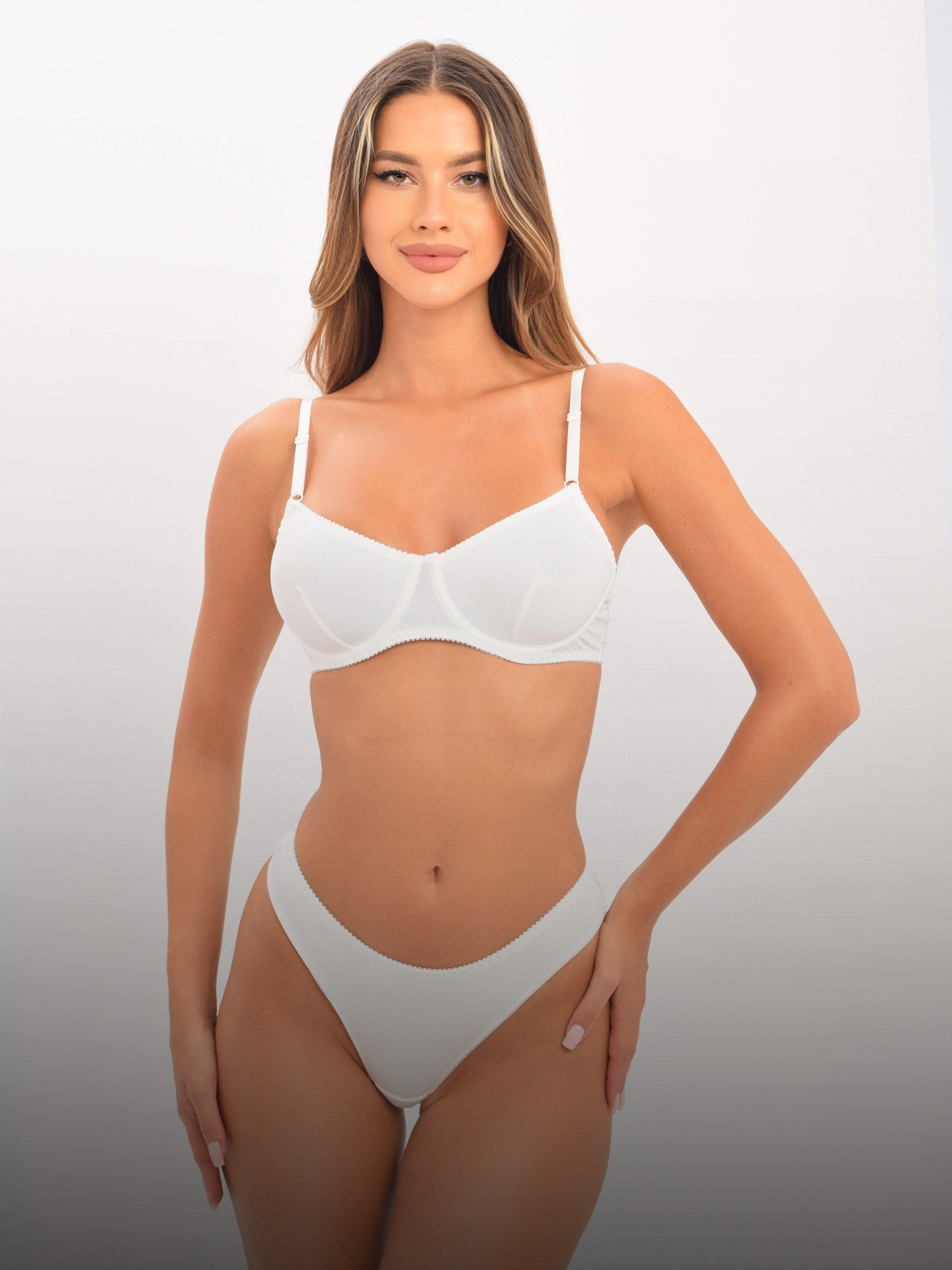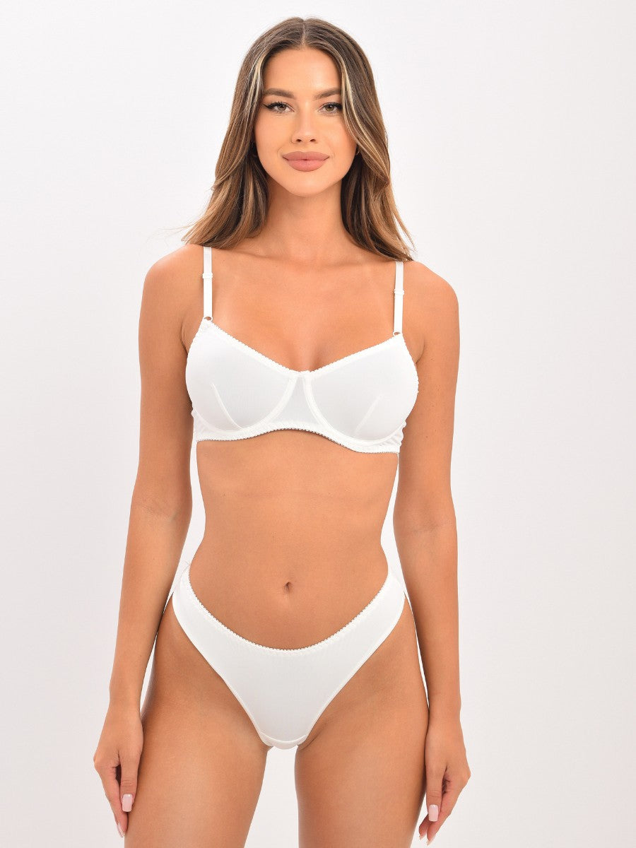 Zweiteiliges Satin-Dessous-Set mit formschönem Bügel-BH und passendem Slip. Weiches, elastisches Material, verstellbare Träger und zeitloses Design für eleganten Komfort – ideal für besondere Anlässe oder den Alltag.