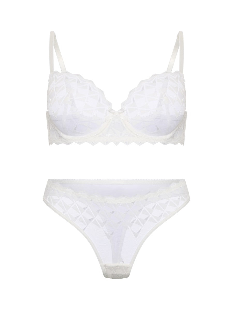 Elegantes Dessous-Set mit gepolstertem Bügel-BH und feinem Spitzen-Tanga. Bietet optimalen Halt, schmeichelt der Silhouette und vereint Komfort mit femininer Raffinesse – perfekt für besondere Anlässe oder stilvolle Alltagsmomente.