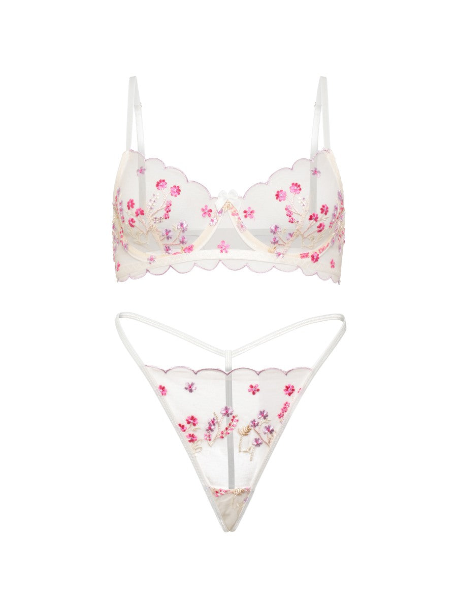 Erleben Sie romantische Eleganz mit unserem bügellosen Dessous-Set. Der florale BH kombiniert sanften Halt mit höchstem Komfort, während der zarte Tanga Ihre Silhouette elegant betont. Ideal für Alltag & besondere Momente.