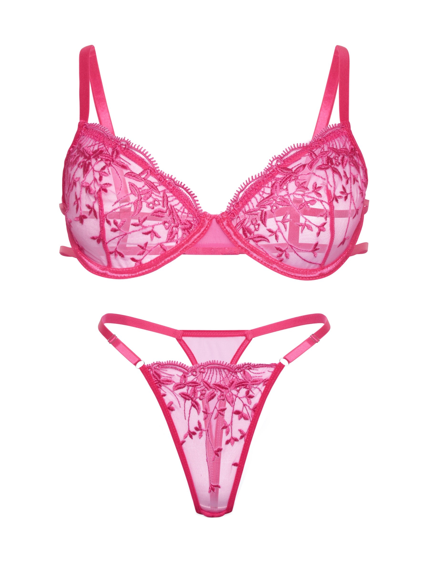 Luxuriöses Bügel-Dessous-Set mit floraler Spitze, verstellbaren Trägern und passendem Tanga. Elegantes Design für perfekten Sitz und stilvolle Ausstrahlung.