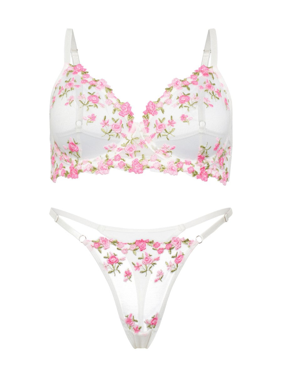 Gönnen Sie sich luxuriöse Wäsche mit diesem edlen Bügel-BH-Set. Zarte Blumenstickerei, weiche Stoffe und perfekte Passform vereinen sich für ein stilvolles Trageerlebnis. Der passende Tanga rundet das Ensemble ab – ein Must-have für jede anspruchsvolle Garderobe.