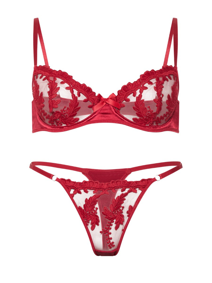Feminines Lingerie-Set mit zarter Stickerei und komfortablem Bügel-BH. Halbtransparente Spitze, edle Details und perfekter Sitz machen dieses Set zur stilvollen Wahl für besondere Momente oder luxuriöse Alltagsmomente.