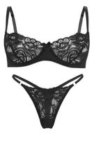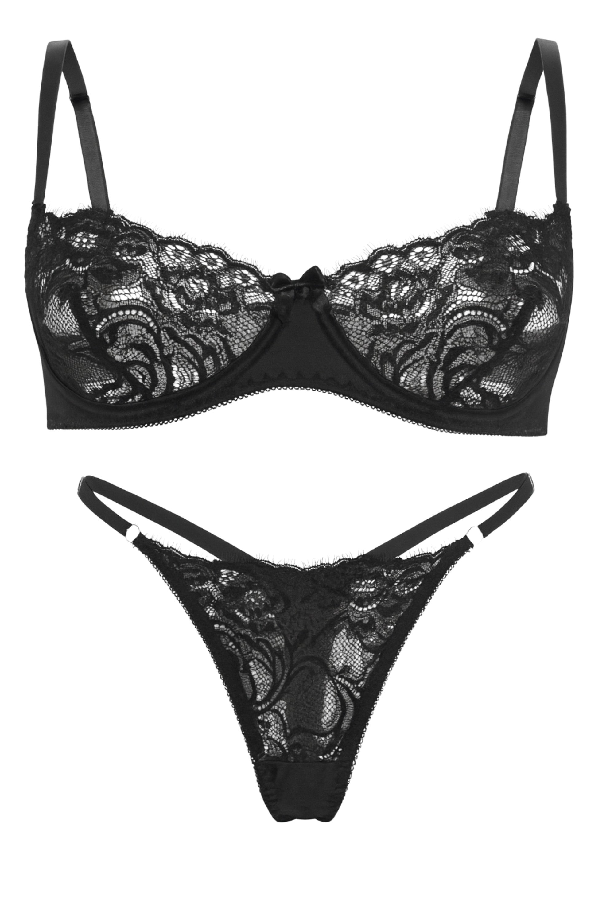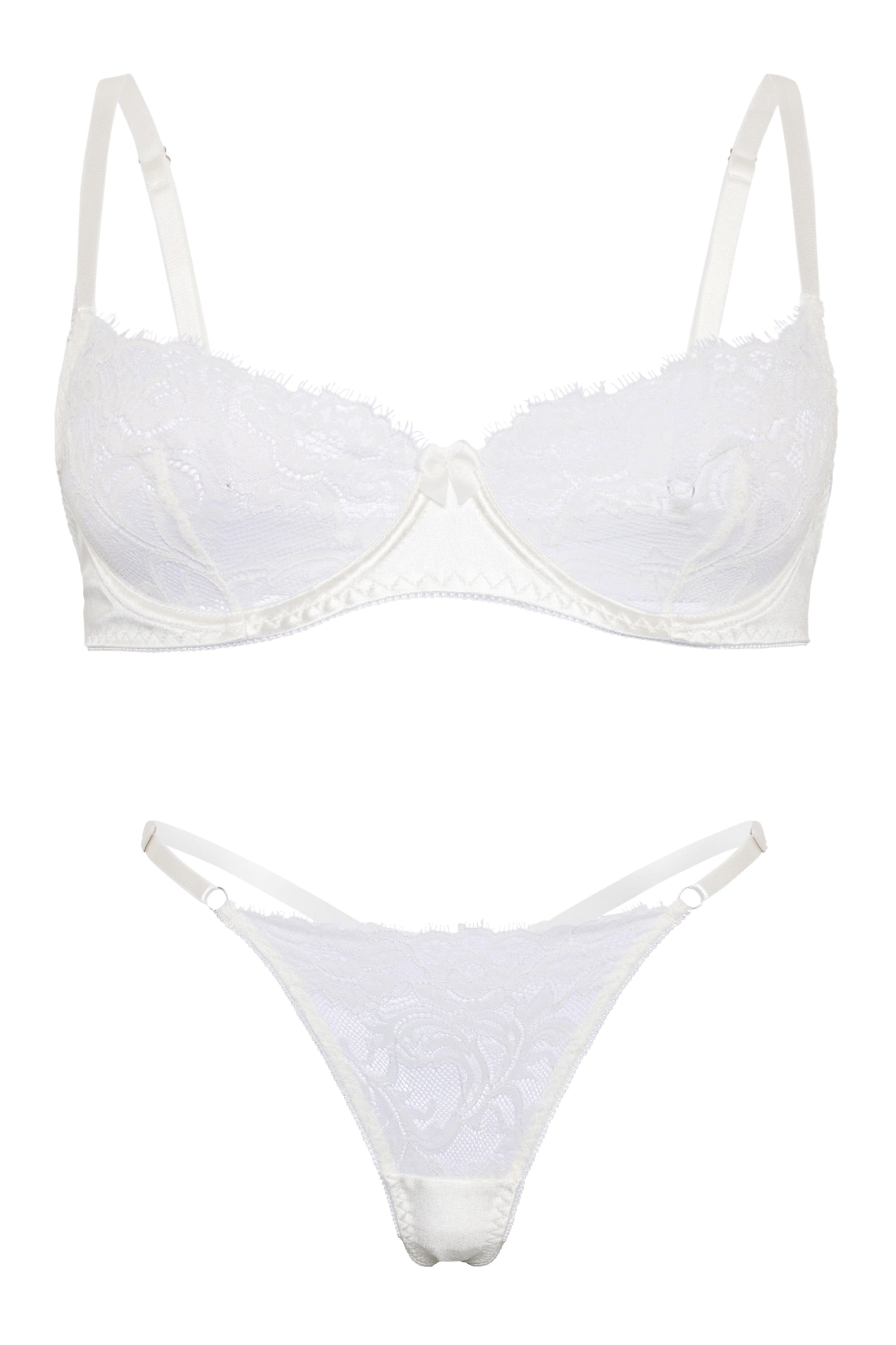 Elegantes Dessous-Set mit formgebendem Bügel-BH und passendem Spitzen-String. Filigrane Details, weiche Materialien und feminine Silhouette – perfekt für besondere Momente und stilvolle Damenunterwäsche.