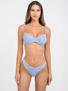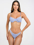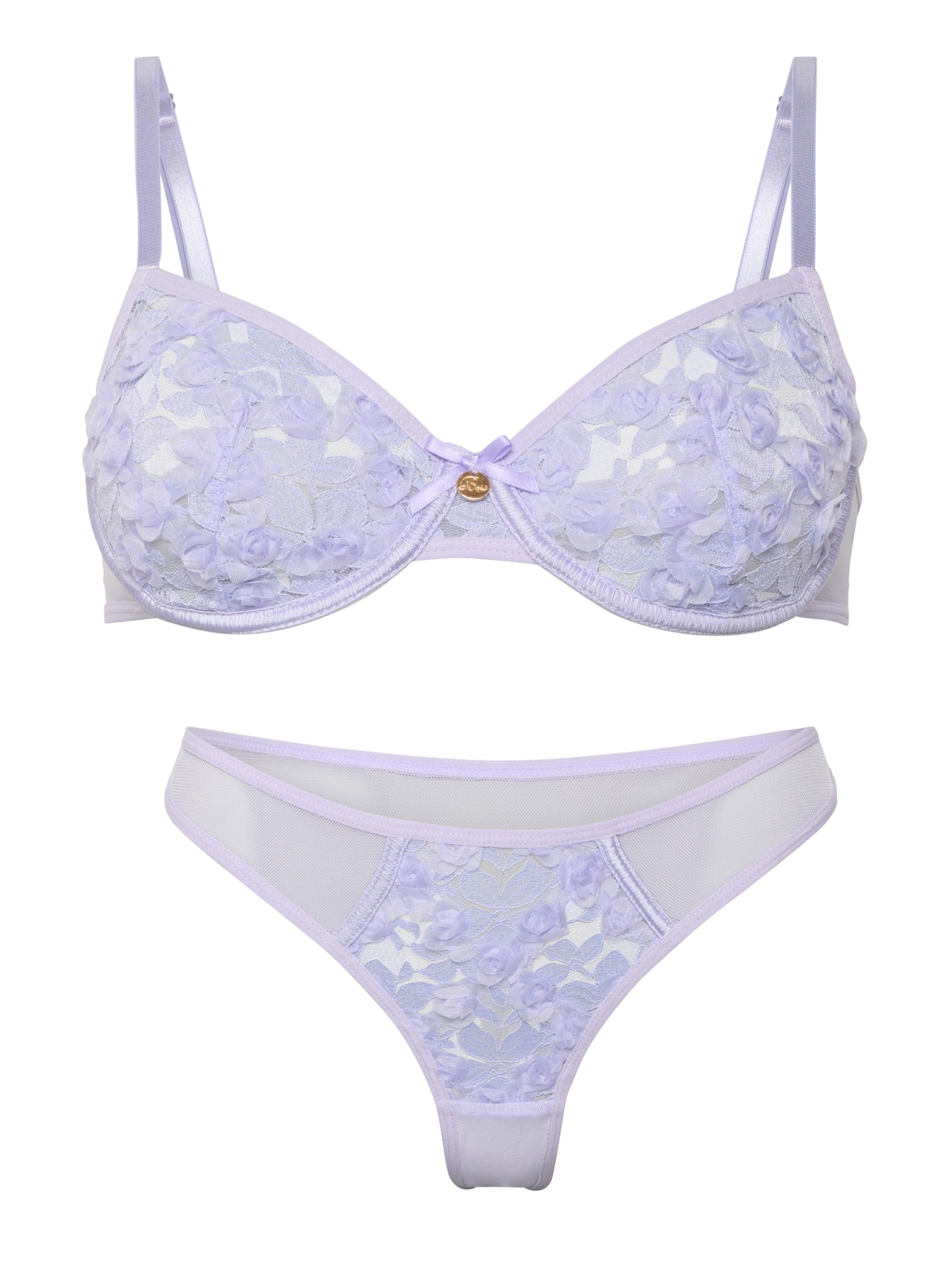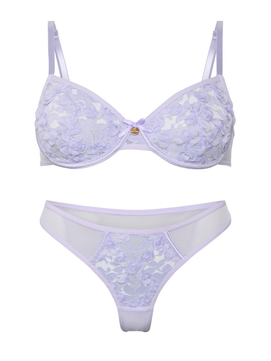 Elegantes Dessous-Set mit Bügel-BH und zartem Tanga aus floraler Spitze. Fein gearbeitete Blütendetails sorgen für einen stilvollen Look, der Komfort und Ästhetik verbindet – ideal für besondere Momente mit sich selbst.
