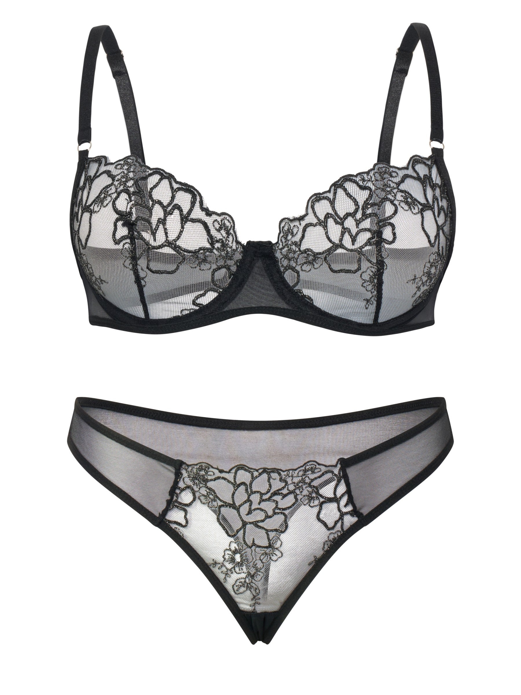- Sinnliches Design: Push-up-BH mit feiner Stickerei & passender Tüll-Tanga