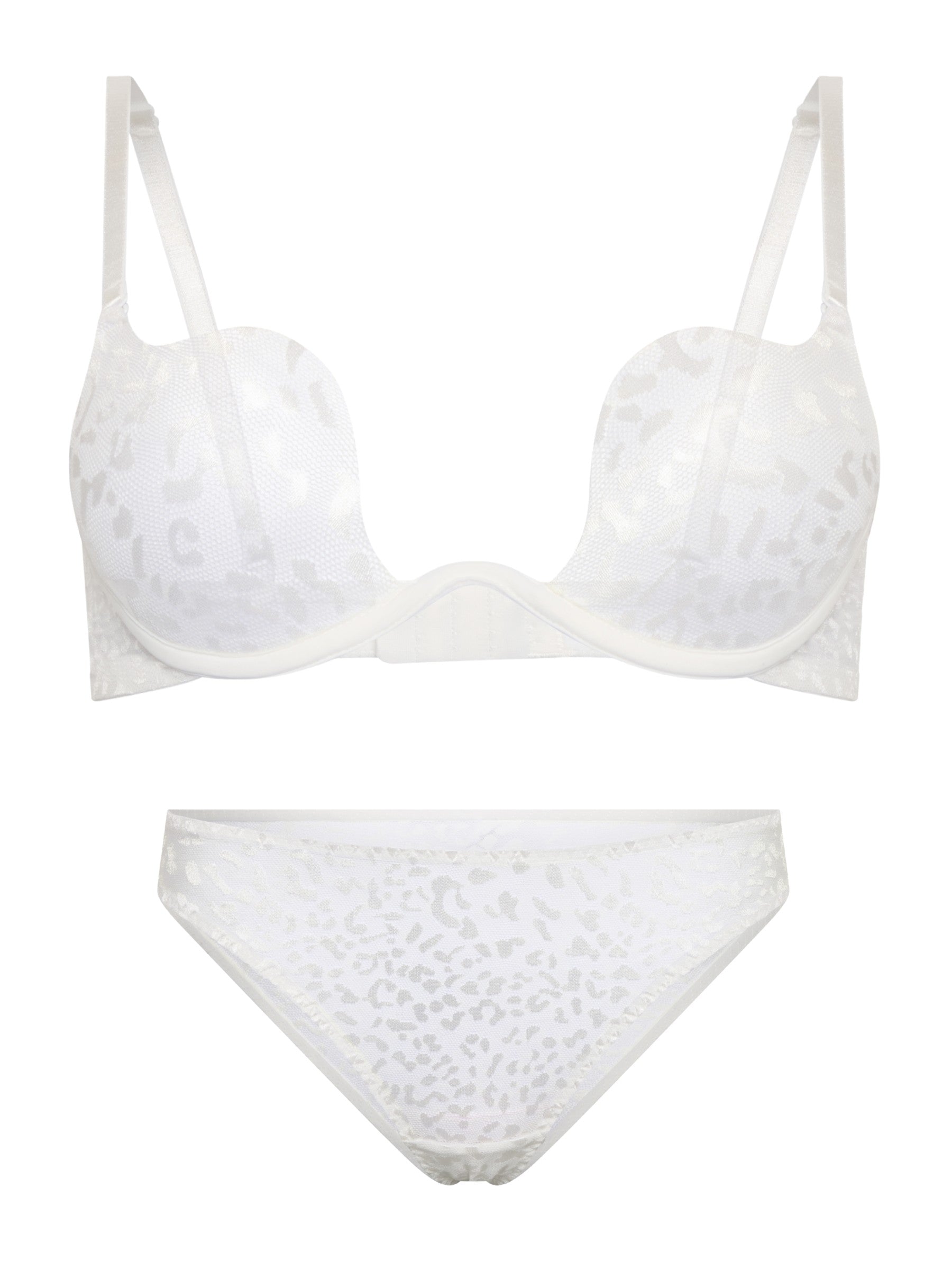 Zweiteiliges Damen-Dessous-Set in Leo-Optik mit Bügel-Push-up-BH und Spitzen-Slip. Bietet sicheren Halt, formt ein schönes Dekolleté und sorgt mit weichem Stretch-Material für höchsten Tragekomfort – ideal für Alltag & besondere Anlässe.