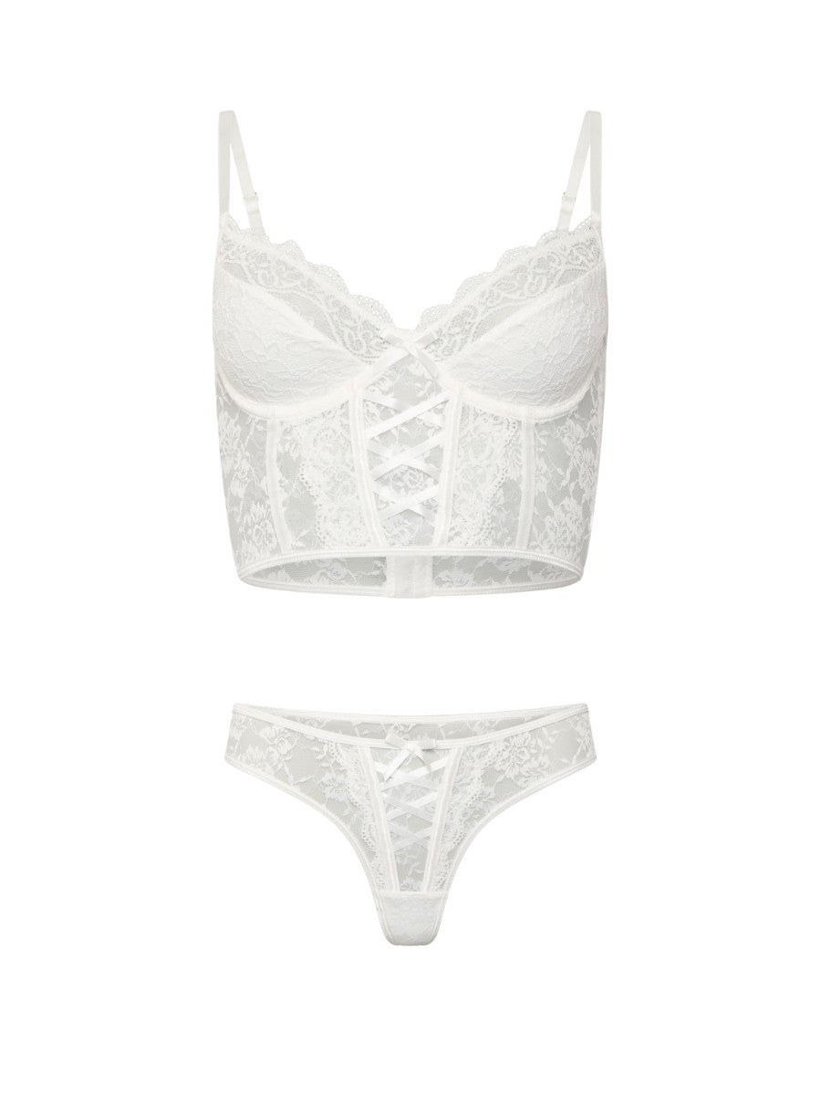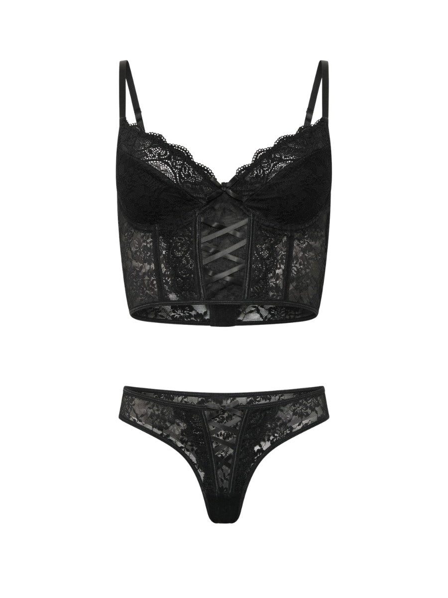 Elegantes Dessous-Set aus feiner Spitze mit Longline-Bügel-BH und String. Perfekte Passform, edles Design und verführerische Details für stilvolle Auftritte – ideal für besondere Momente und den Alltag.