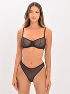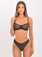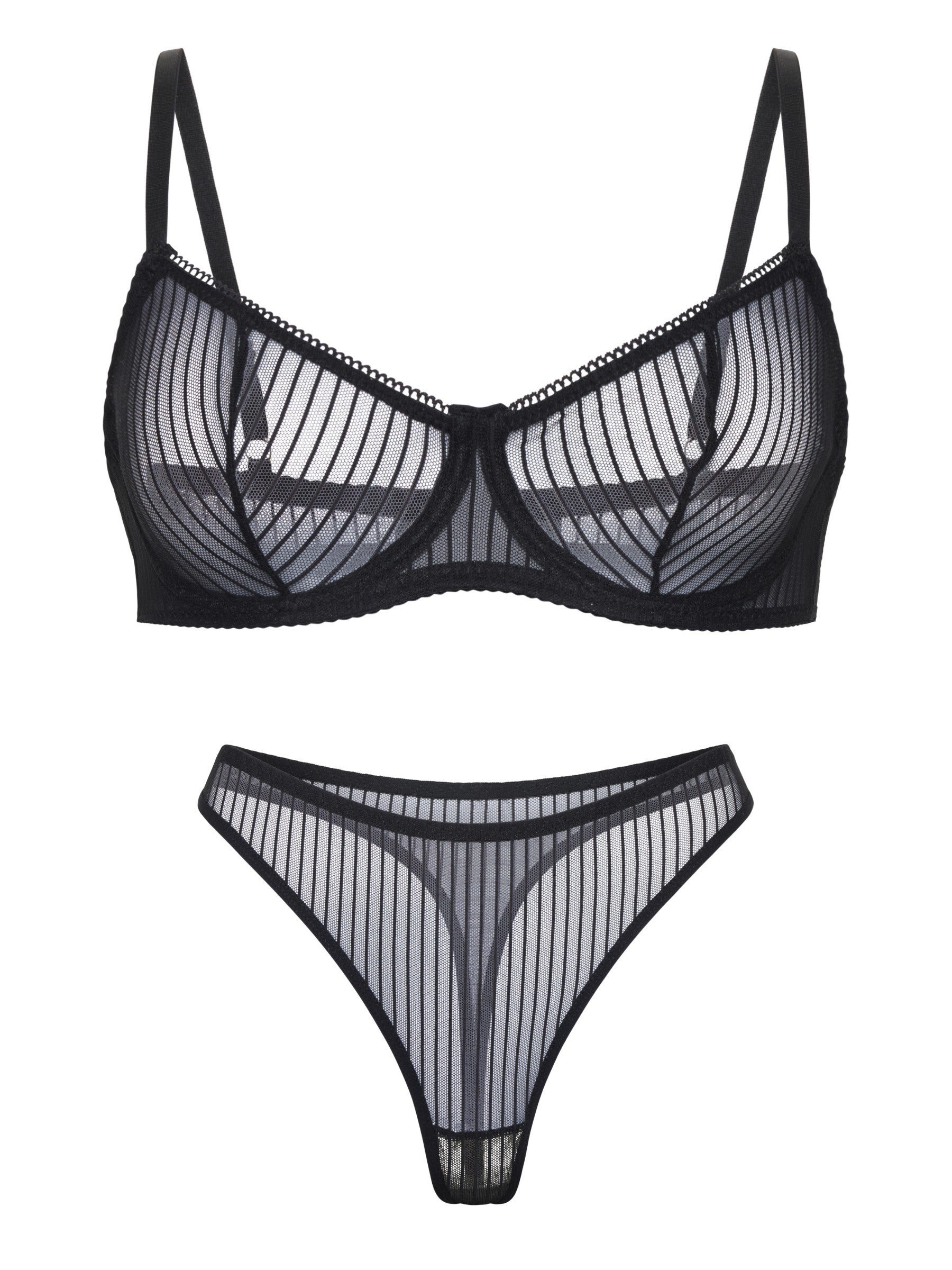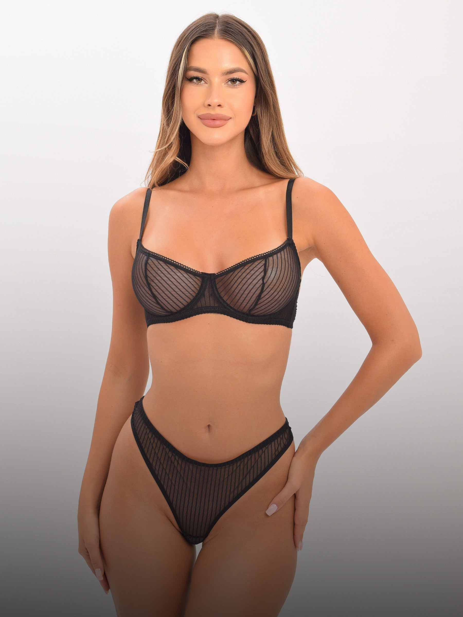 Edles Netz-Dessous-Set mit Bügel-BH und passendem Tanga. Leichtes, atmungsaktives Material, verstellbare Träger und figurbetonte Passform für stilvolle Damenunterwäsche mit hohem Komfort.