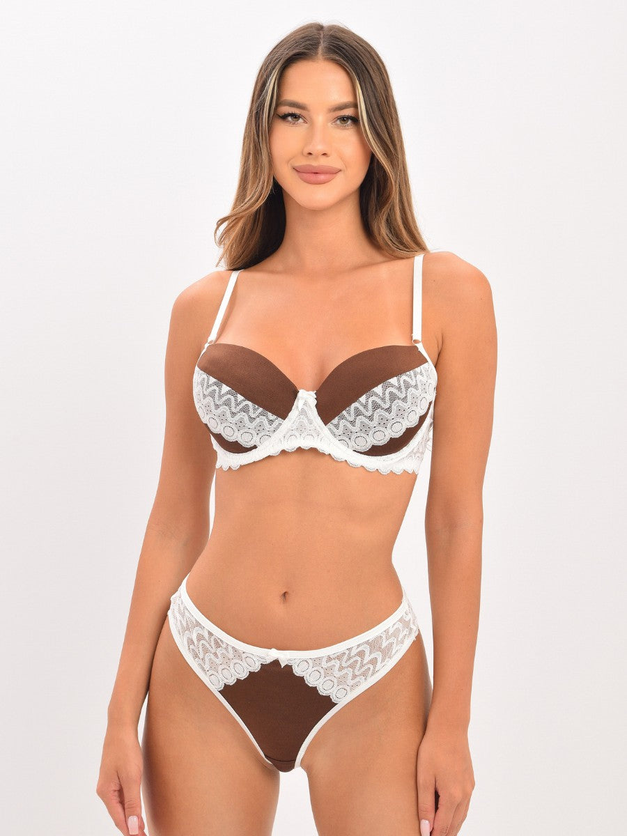 Elegantes 2-teiliges Dessous-Set mit gepolstertem Push-up-Bügel-BH und passendem Spitzen-String. Hochwertige Materialien, verstellbare Träger und feminine Passform für den perfekten Auftritt.