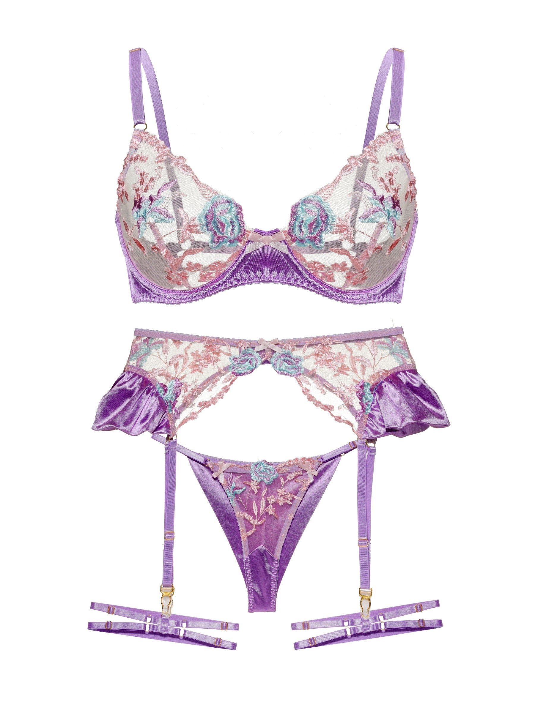 Sinnliche Eleganz & verführerischer Luxus! Dieses 3-teilige Dessous-Set mit besticktem Bügel-BH, verstellbaren Trägern, String und elastischen Strapsen mit Beinring zaubert aufregende Looks. Hautfreundliches Mesh, edle Stickereien und perfekte Passform – ideal für besondere Momente!