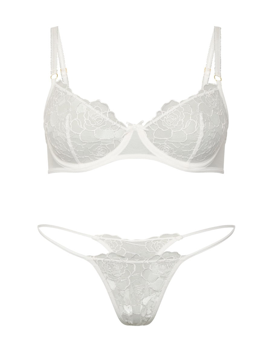 Elegantes Dessous-Set mit Bügel-BH und filigranem Tanga aus feiner Spitze. Für sicheren Halt, edle Silhouette und feminine Details – perfekt für stilbewusste Momente und besondere Anlässe.