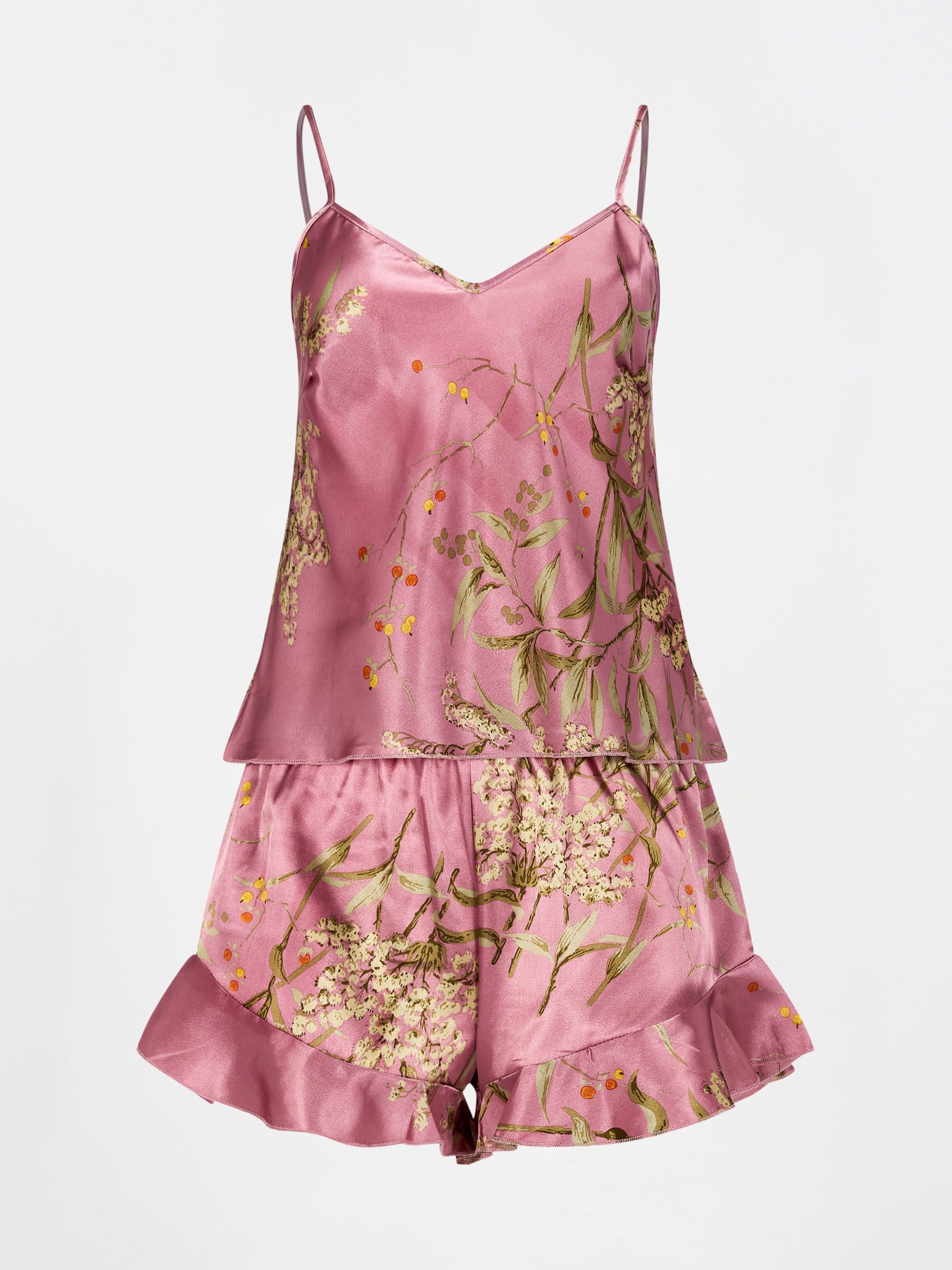 Romantisches Design: Cami-Top und Shorts mit femininen Rüschensäumen.