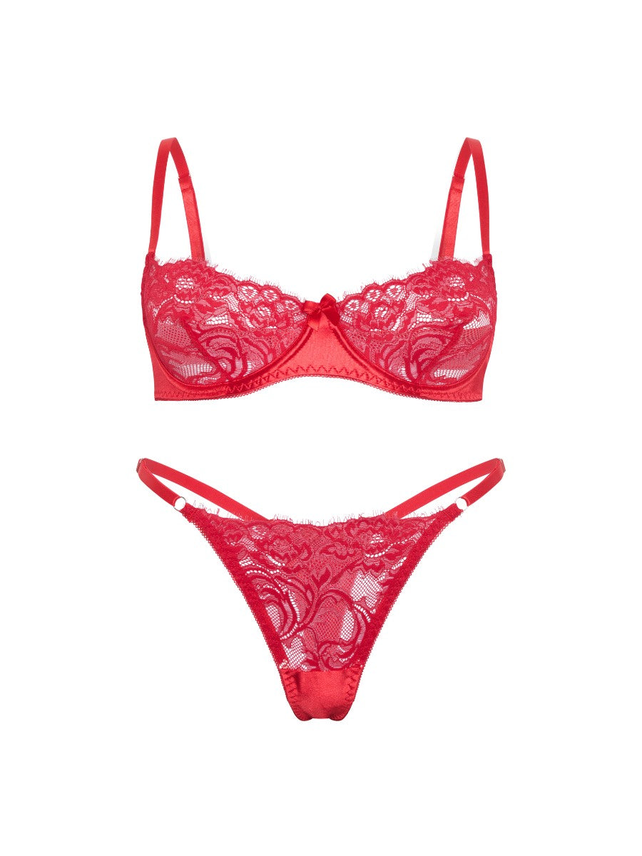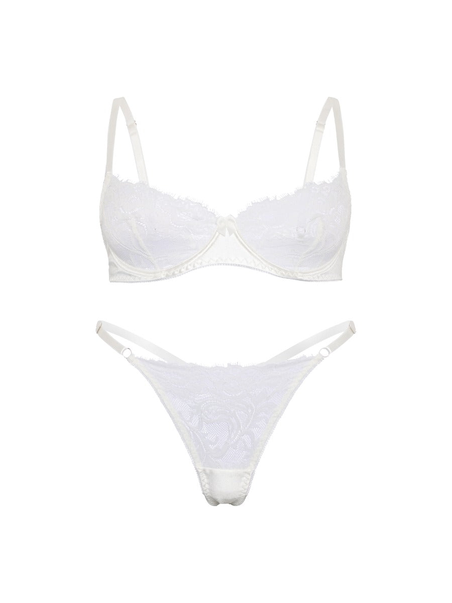 Elegantes Dessous-Set mit formgebendem Bügel-BH und passendem Spitzen-String. Filigrane Details, weiche Materialien und feminine Silhouette – perfekt für besondere Momente und stilvolle Damenunterwäsche.