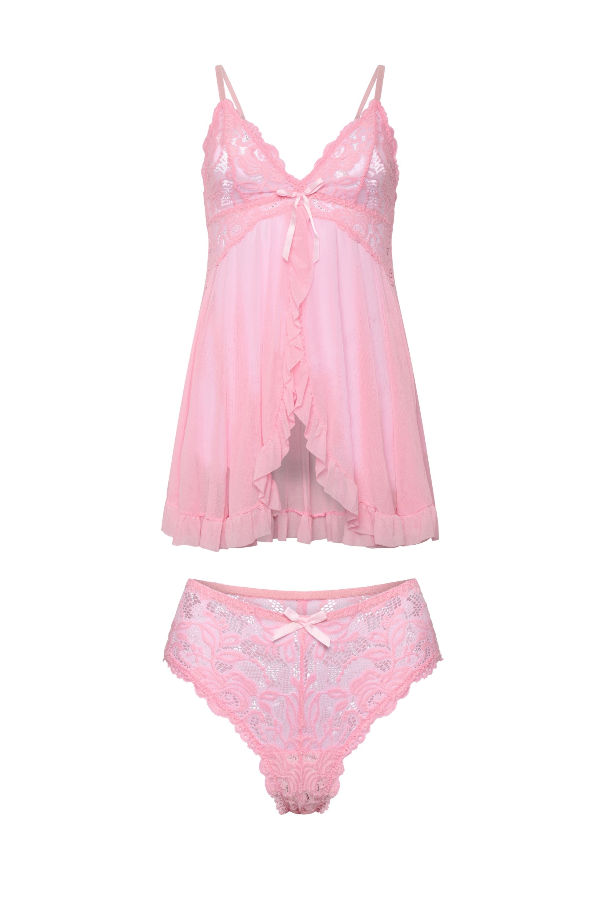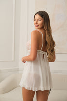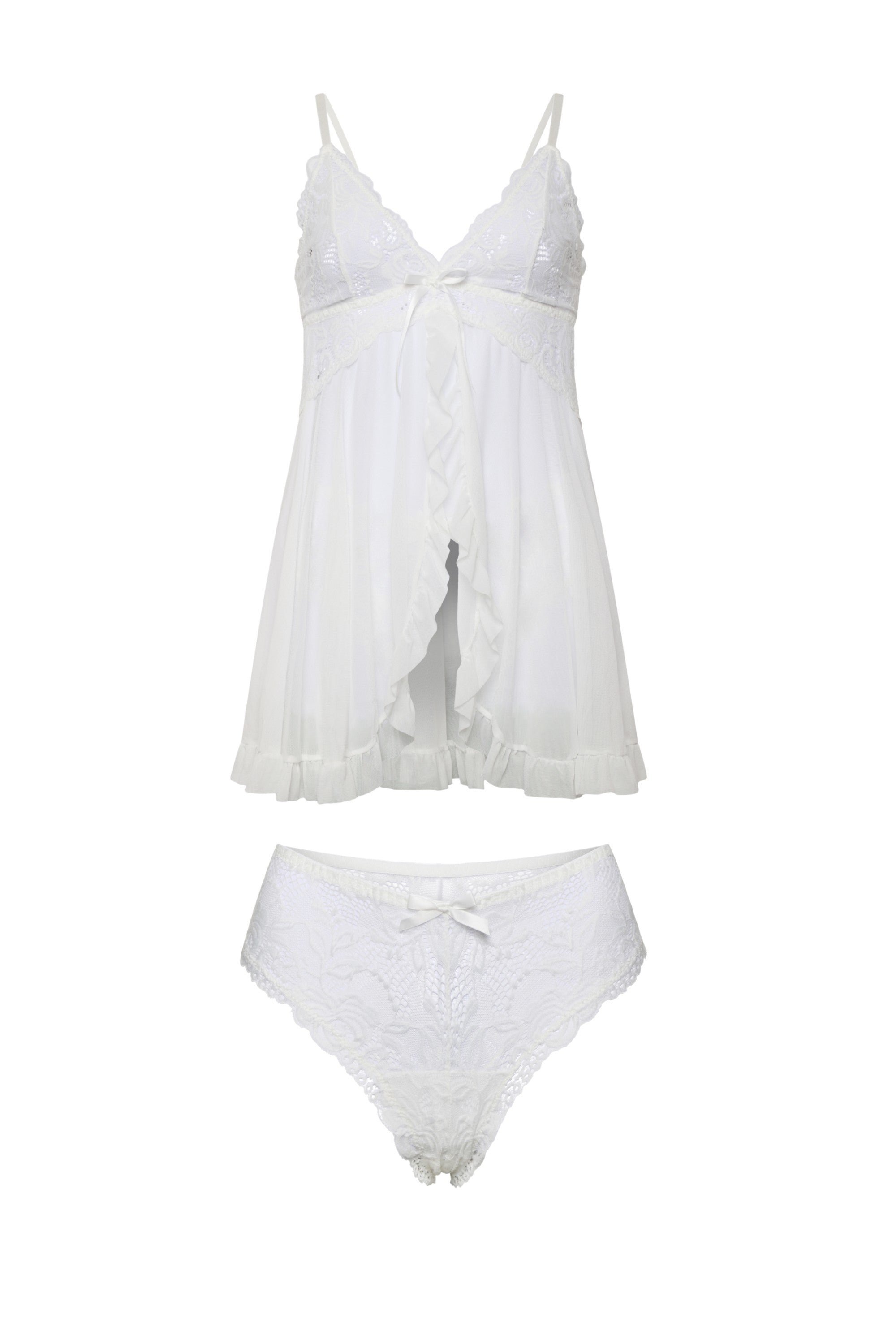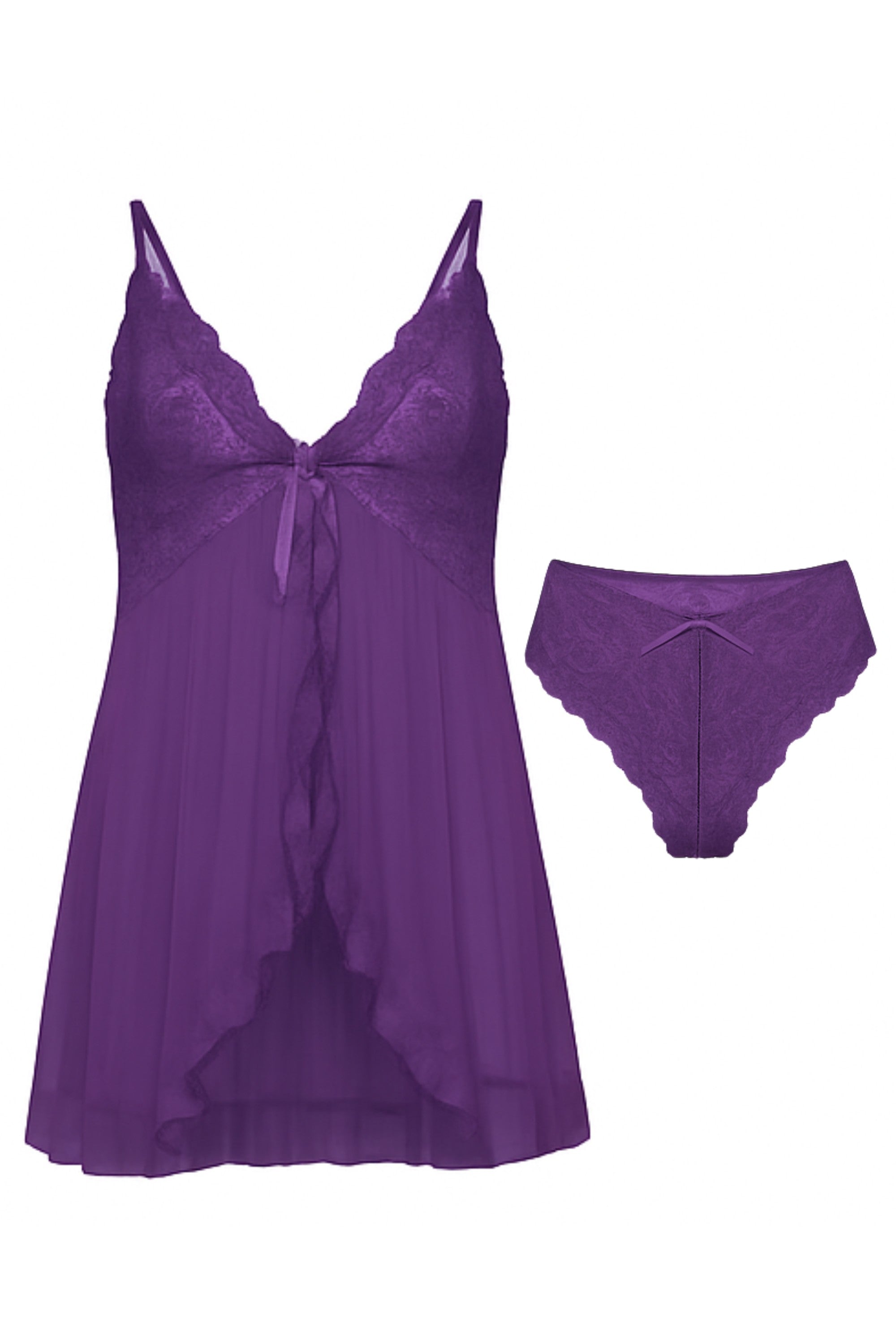 Elegantes Nachthemd-Set mit transparenter Spitze und passendem Slip. Luftig, leicht und edel – perfekt für besondere Momente oder als luxuriöse Nachtwäsche. Stilvoll, bequem und hochwertig verarbeitet.