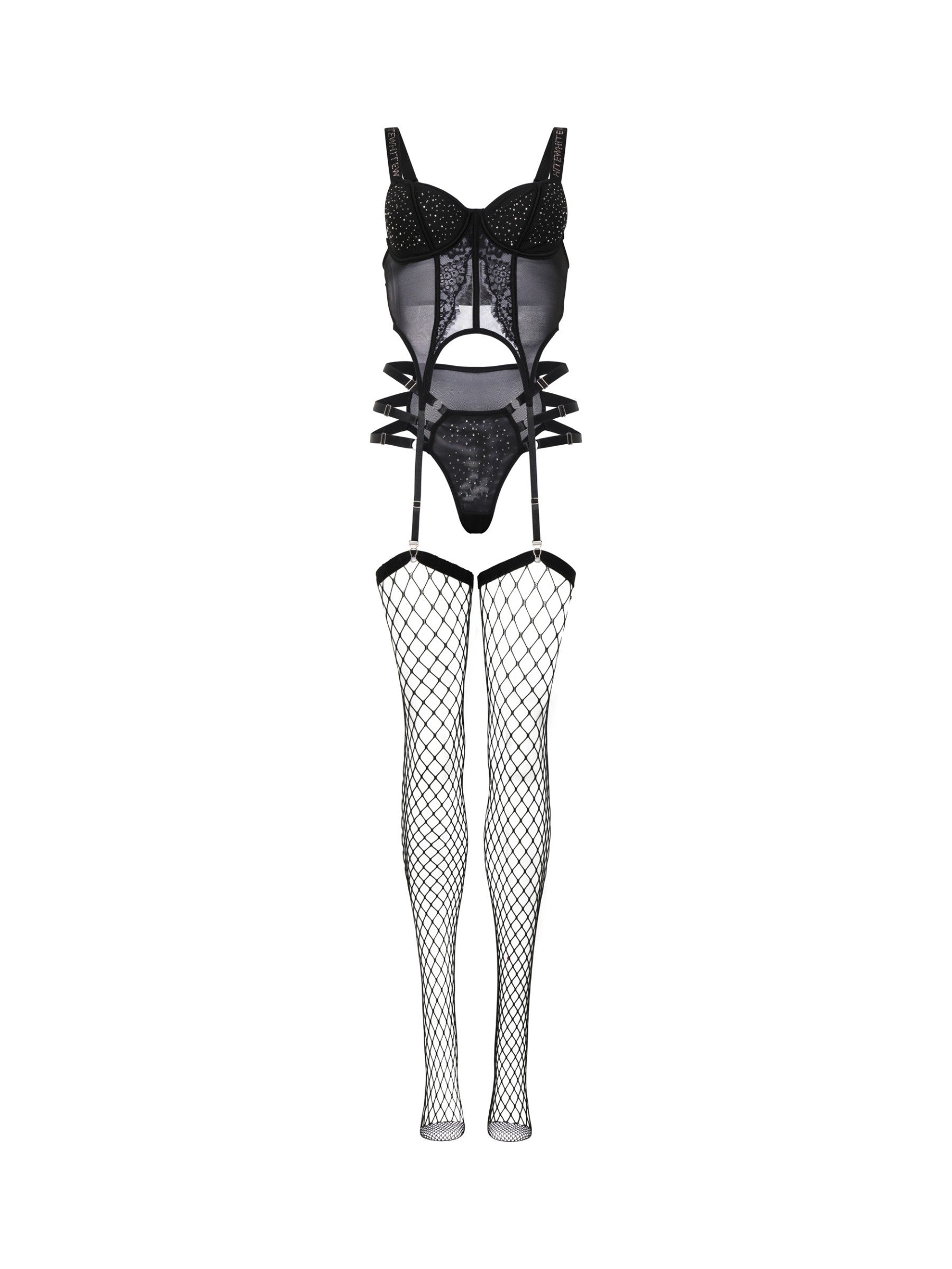 - Inklusive Netzstrümpfen & Tanga – stilvolles Set für elegante Momente