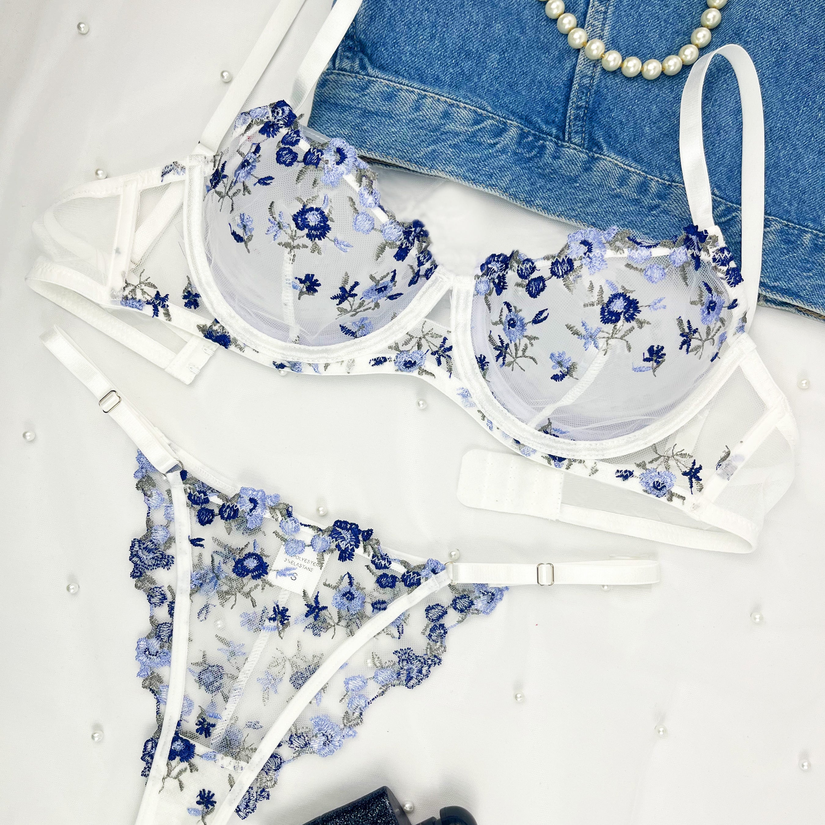 Add a touch of luxury to your wardrobe with this push-up lingerie set. The embroidered bra and tulle thong combine comfort and style, while the delicate floral pattern and sheer mesh create a modern, elegant look.