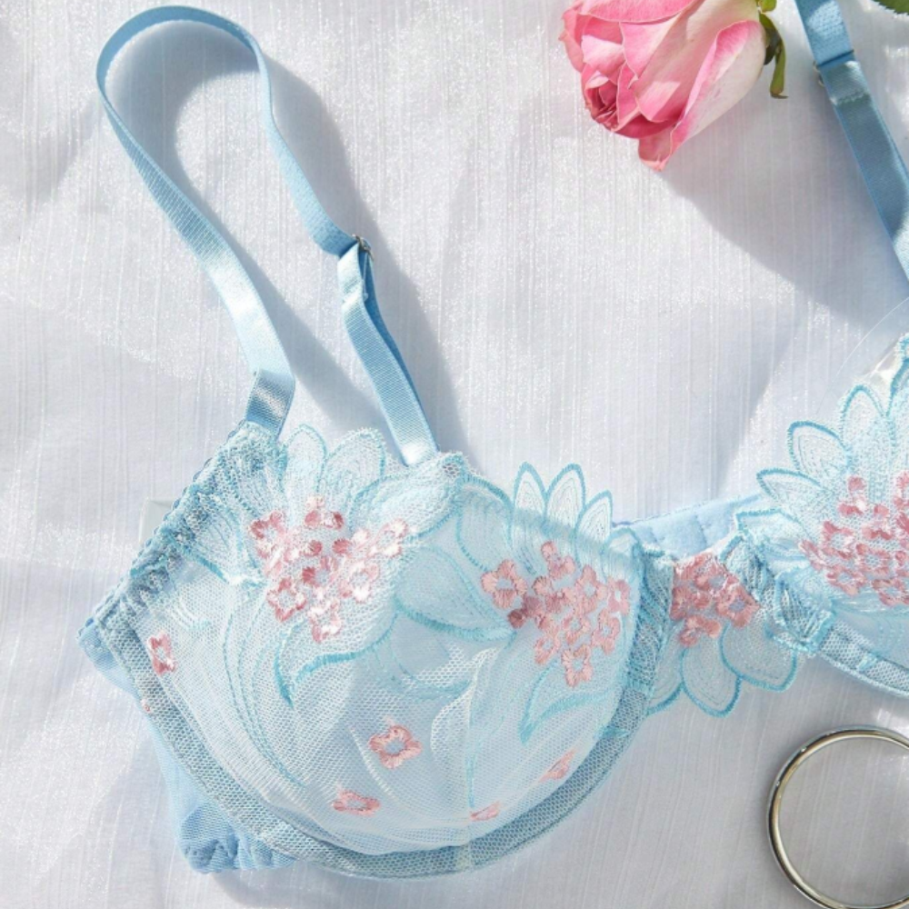 Feel elegant in our 2-Piece Lingerie Set, featuring an underwire bra and embroidered thong. With a sheer design, perfect fit, and floral patterns, it’s ideal for special occasions or stylish everyday wear.
