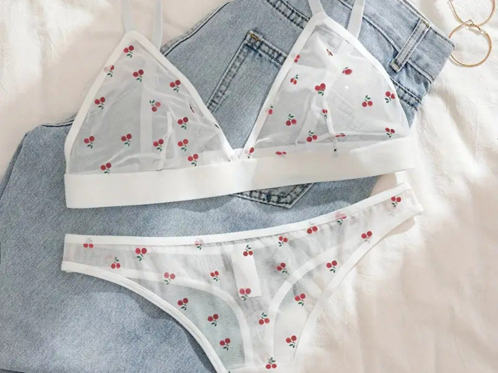 Aireado conjunto de lencería triangular con elegante estampado, sujetador con aros y tanga a juego. Diseño transparente, máxima comodidad y elegancia moderna: ideal para momentos especiales o para llevar a diario.