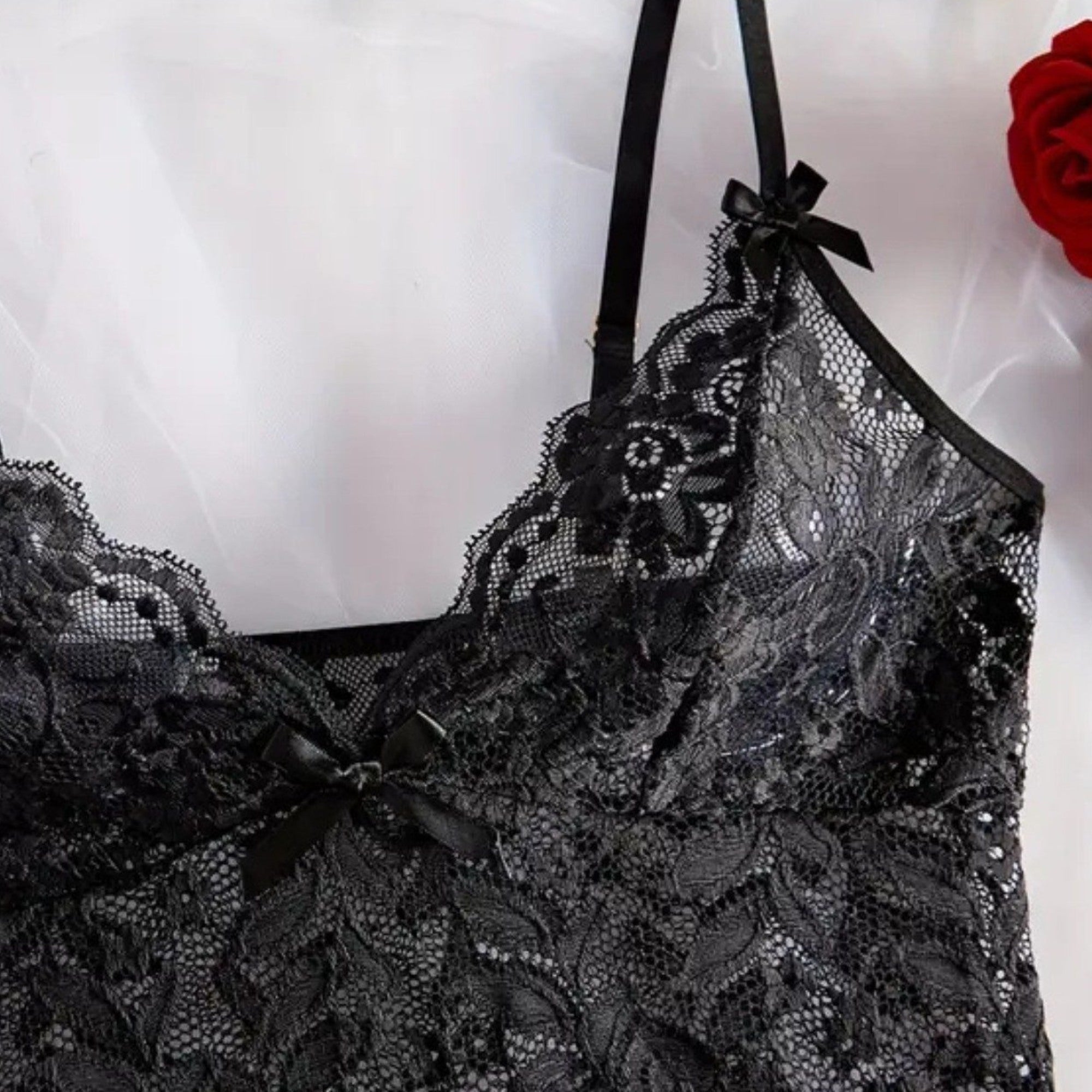 Body élégant en dentelle à motif floral, dos nu et entrejambe ouvert. Dentelle transparente, matière extensible et détails raffinés garantissent une élégance féminine et un confort exceptionnel, idéal pour les grandes occasions.