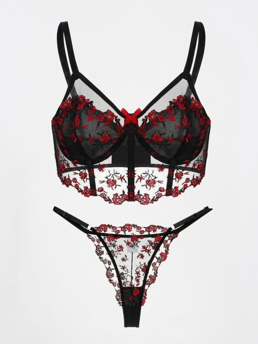 Lingerie séduisante brodée – soutien-gorge long et slip
