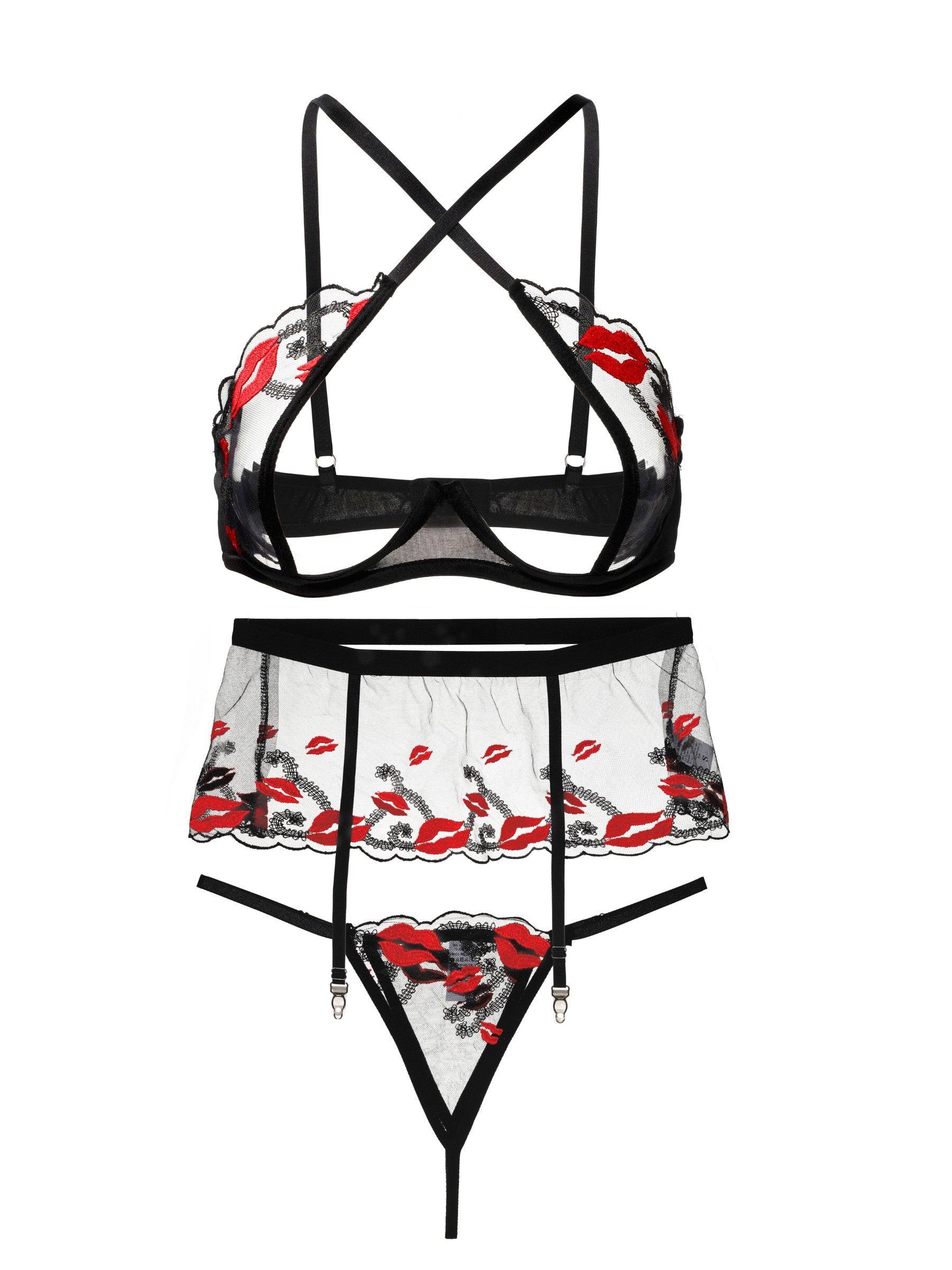 Séduction sensuelle ! Cet ensemble de lingerie luxueux avec soutien-gorge à armatures croisées, broderie délicate et porte-jarretelles réglable accentue parfaitement vos courbes. Le string assorti complète le look – idéal pour les soirées romantiques et les occasions spéciales.