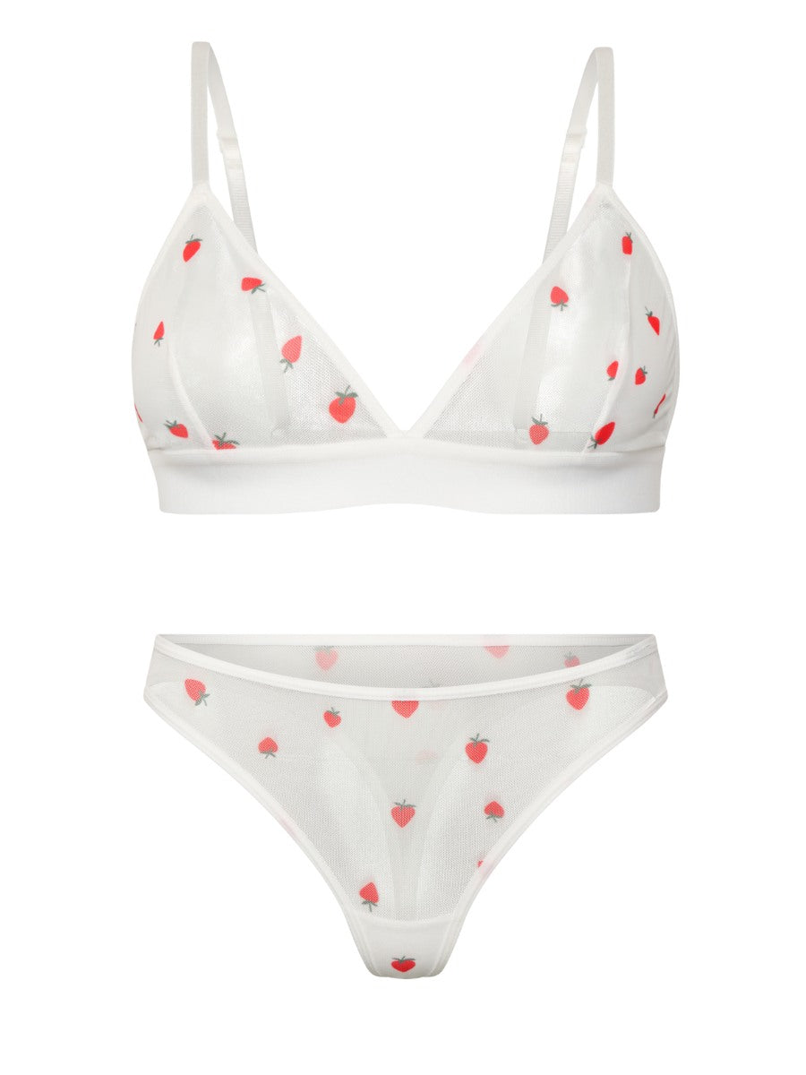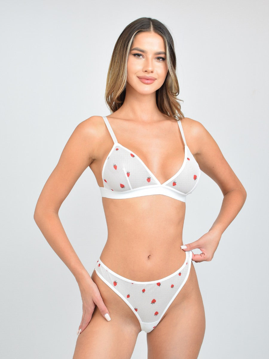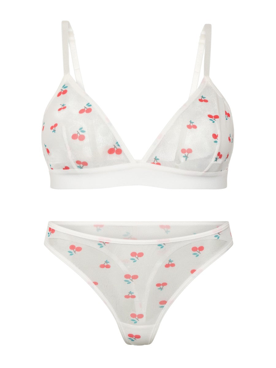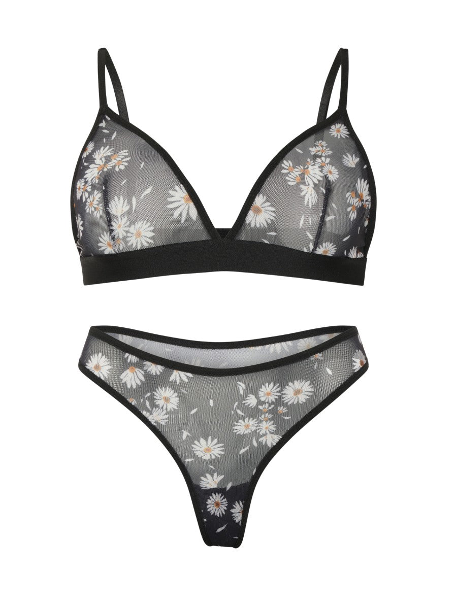 Ensemble de lingerie triangle aérien à l'imprimé élégant, avec soutien-gorge sans armatures et string assorti. Transparent, confortable et moderne, il est idéal pour les grandes occasions comme au quotidien.