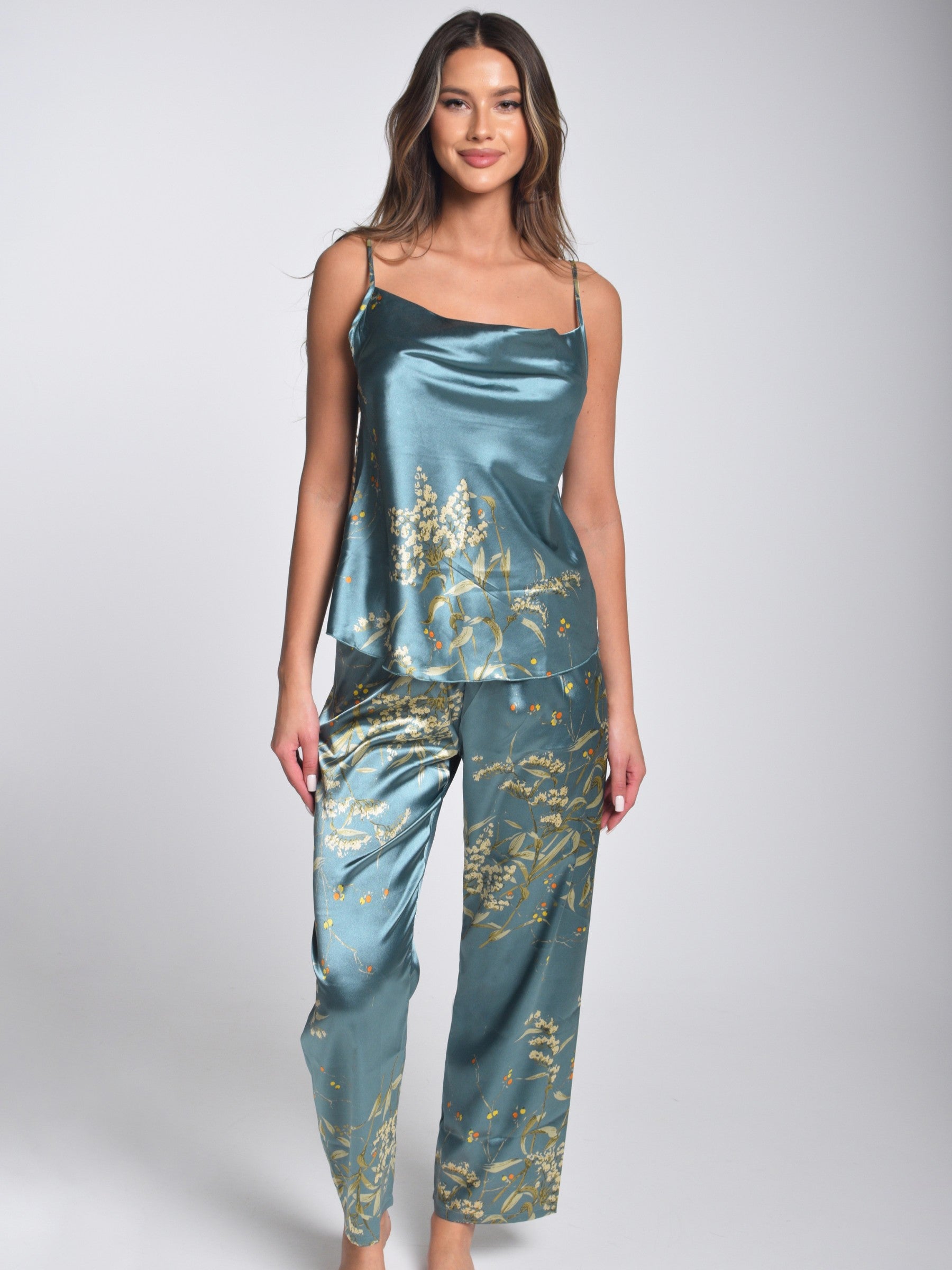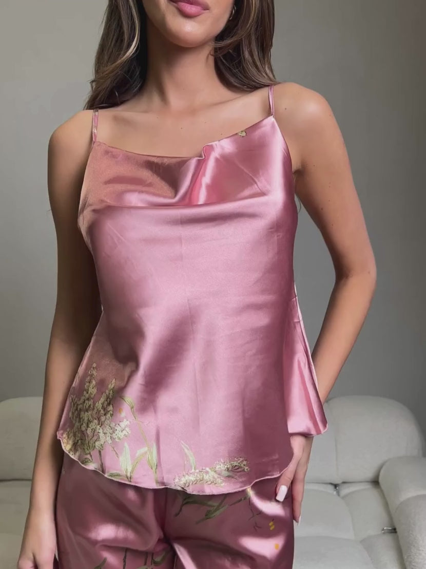 Apportez style et confort à votre tenue de nuit avec ce pyjama capri. Il comprend un haut dos nu à encolure cascade et un pantalon extensible à imprimé floral. Idéal pour des nuits détendues.