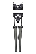 - Strumpfhalter, passender String und Strümpfe als elegantes Komplett-Set.