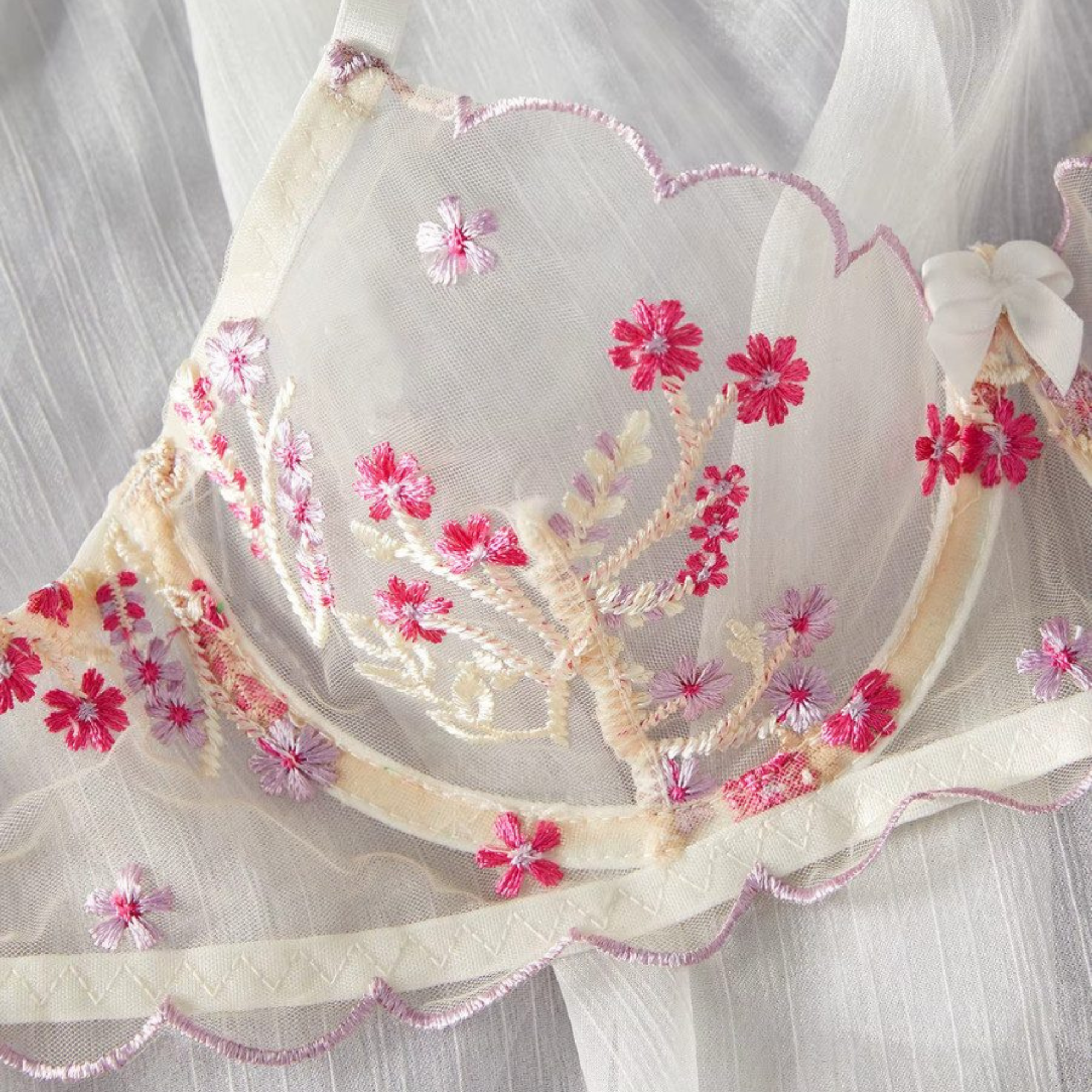 • Soutien-gorge sans armatures avec broderie florale délicate pour un maintien doux et un style féminin