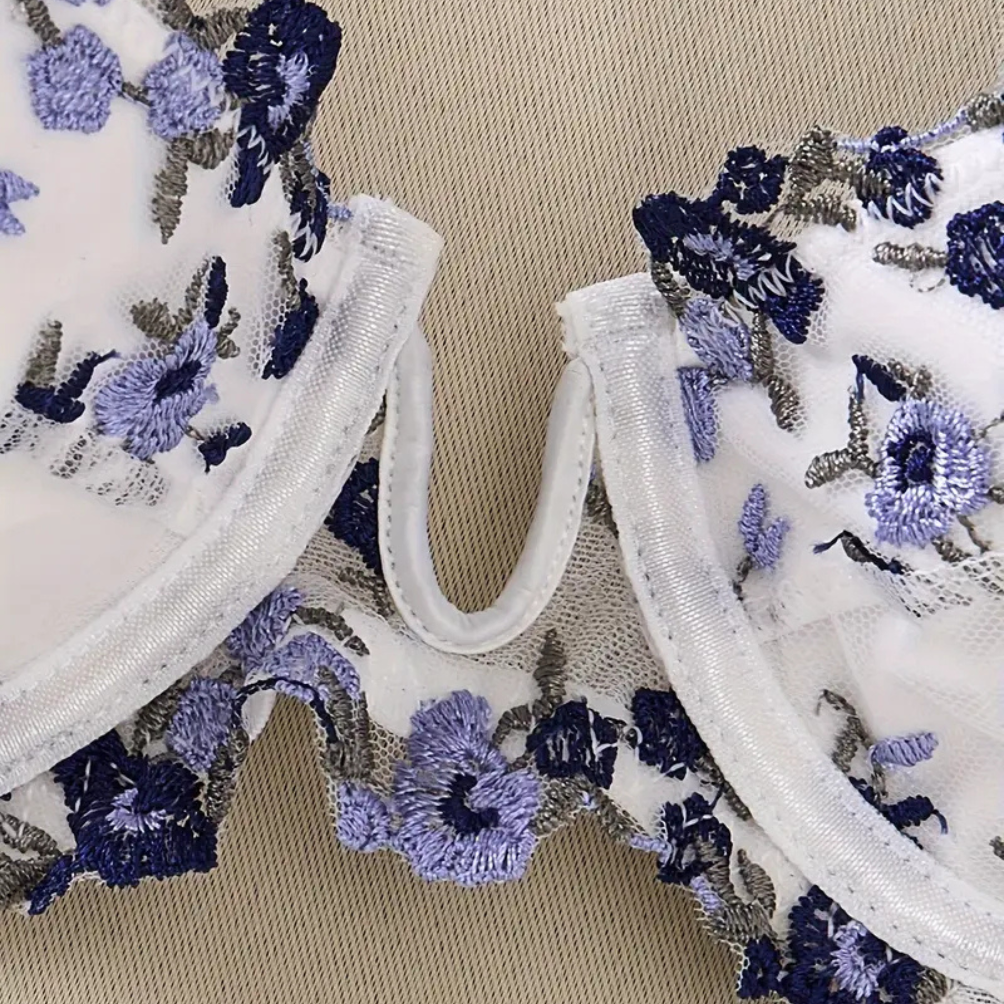 Ensemble de lingerie romantique avec soutien-gorge à armatures et broderie délicate. Dentelle délicate et détails élégants pour un look élégant et une coupe parfaite, idéal pour les grandes occasions ou comme cadeau raffiné.