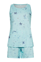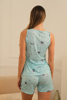 Leichtes Damen-Pyjama-Set mit ärmellosem Top und Shorts. Aus atmungsaktivem, weichem Stoff für höchsten Komfort. Ideal für Sommernächte oder entspannte Stunden zu Hause – stilvoll, bequem und feminin zugleich.