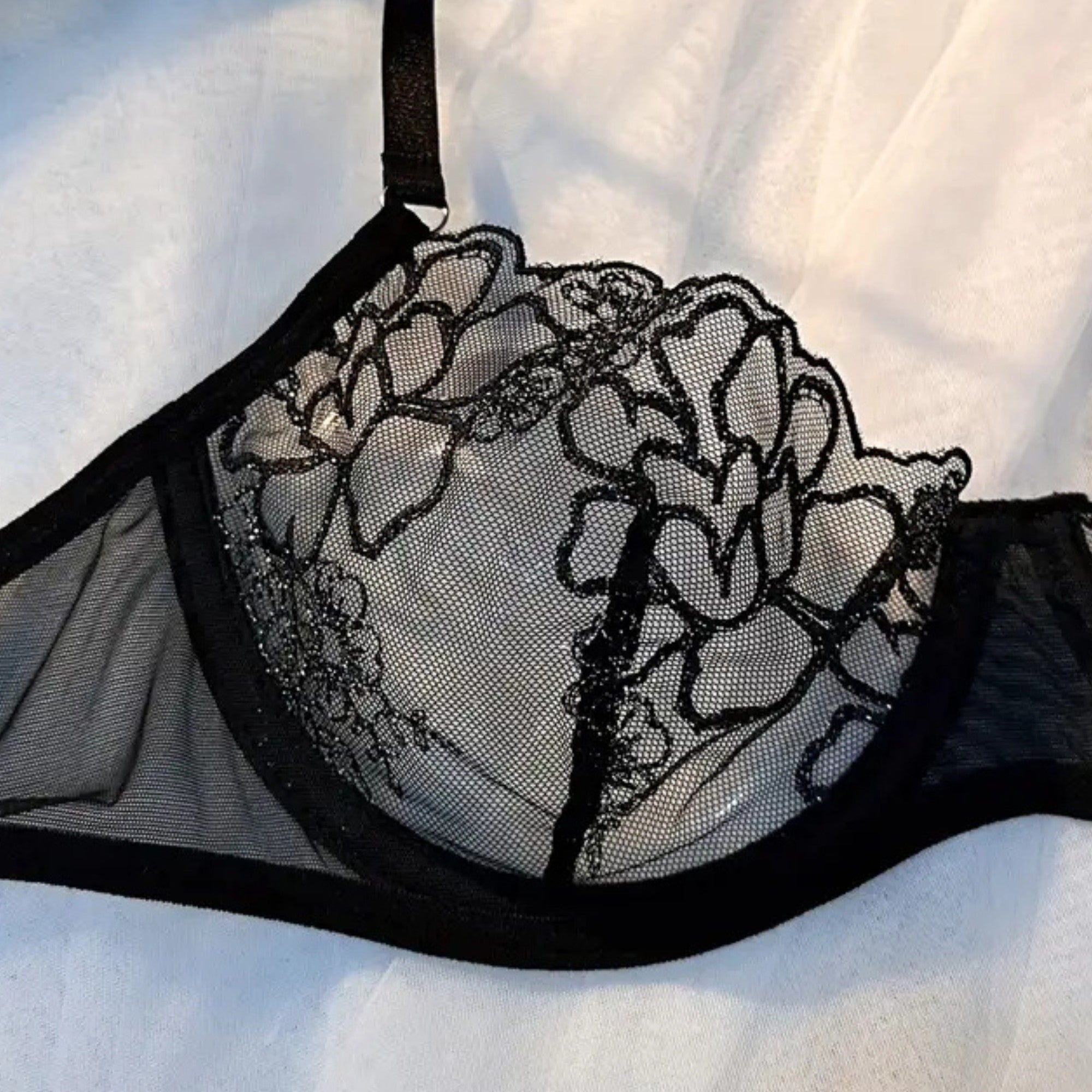 - Design sensuel : soutien-gorge push-up avec broderie fine & string en tulle assorti