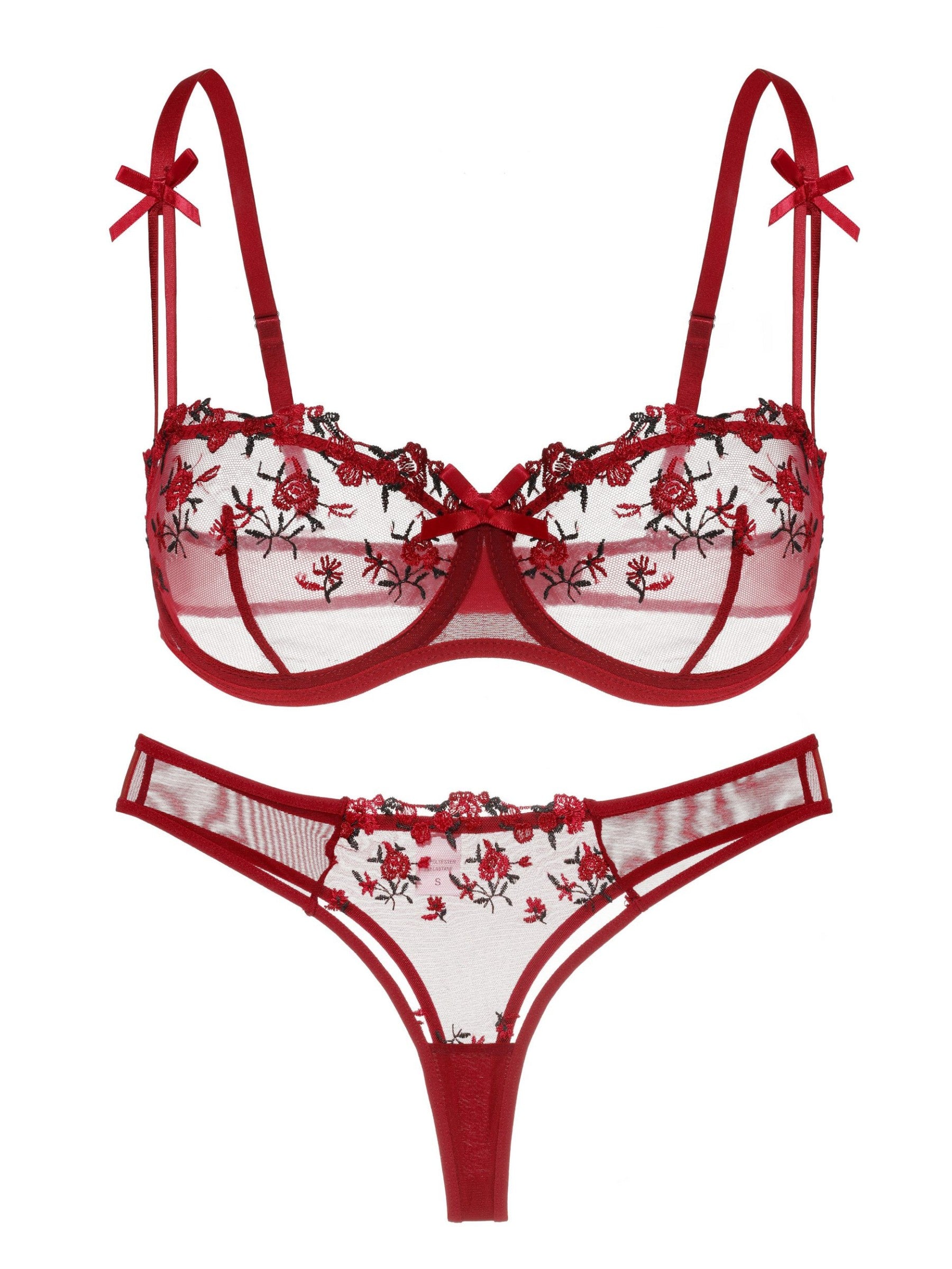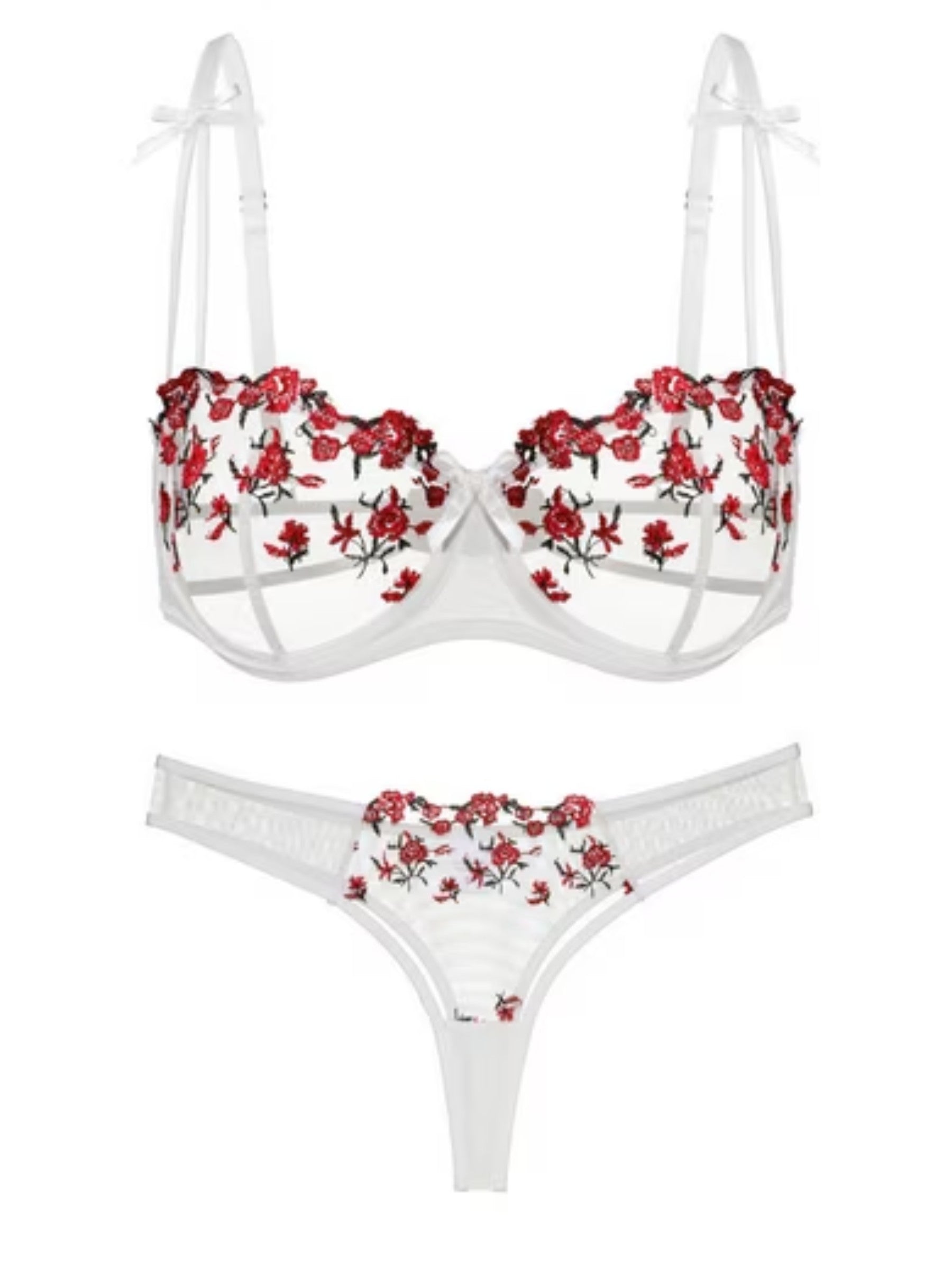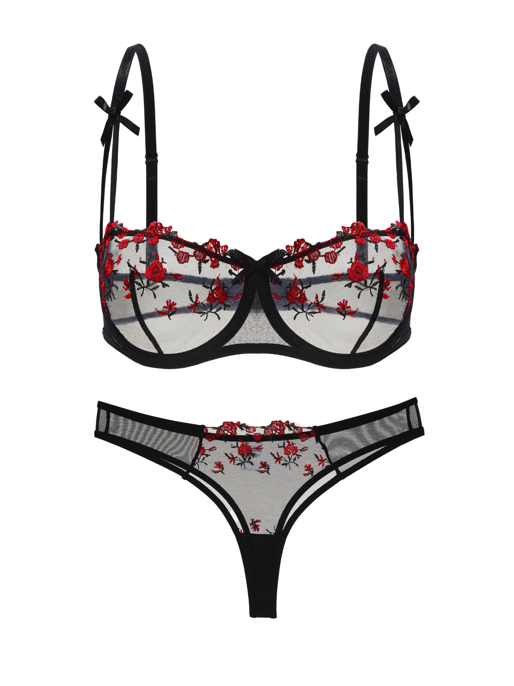 Genießen Sie Eleganz mit diesem 2-teiligen Dessous-Set, bestehend aus einem bestickten Bügel-BH und einem passenden Tüll-Tanga. Hochwertige Materialien und ein stilvolles Design sorgen für Komfort und Selbstbewusstsein, jeden Tag.