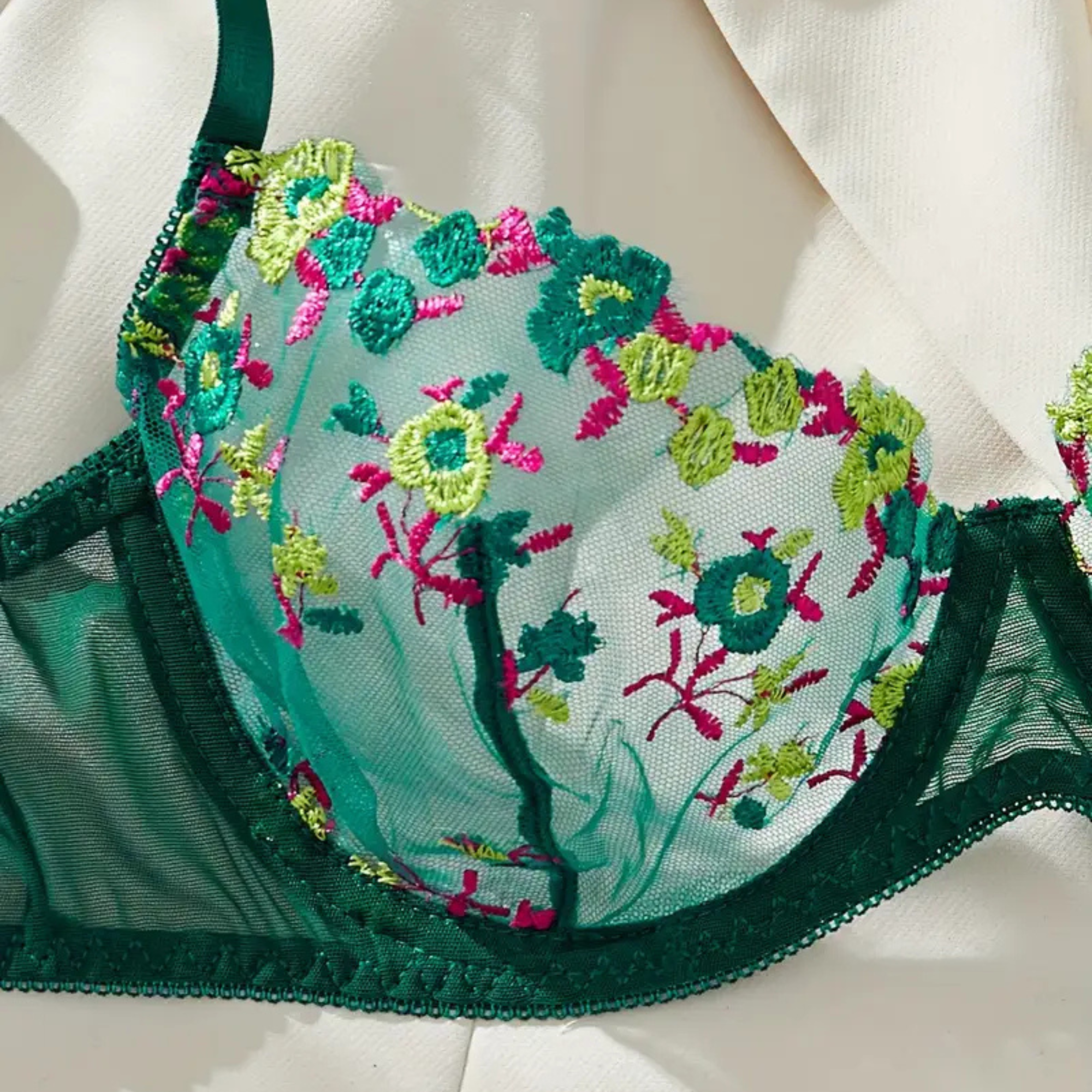 Eleganz in jedem Detail: Feine Stickerei, halbtransparenter Tüll und angenehmer Tragekomfort machen dieses 2-teilige BH-Set zur stilvollen Wahl für Alltag und besondere Momente.