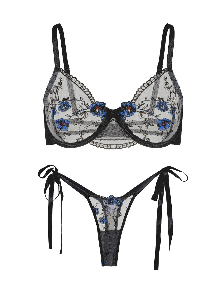 - Verführerisches Design – Bestickter Push-up-BH & luftiger Tüll-Tanga