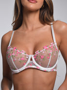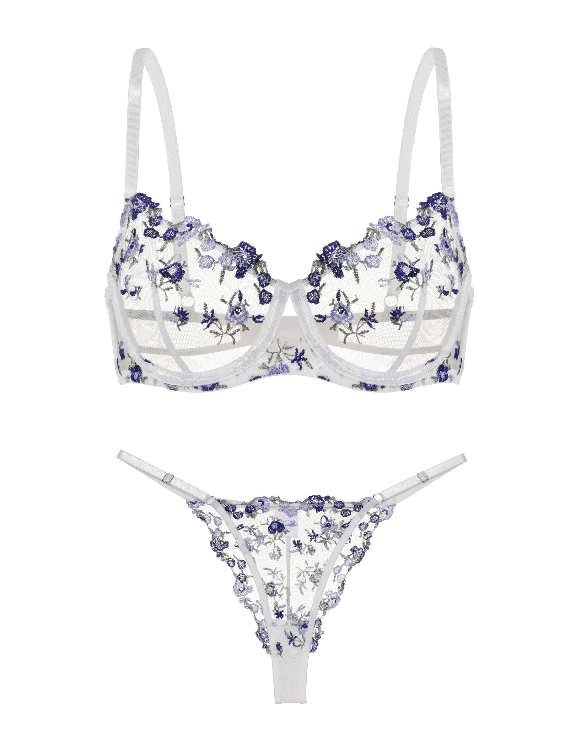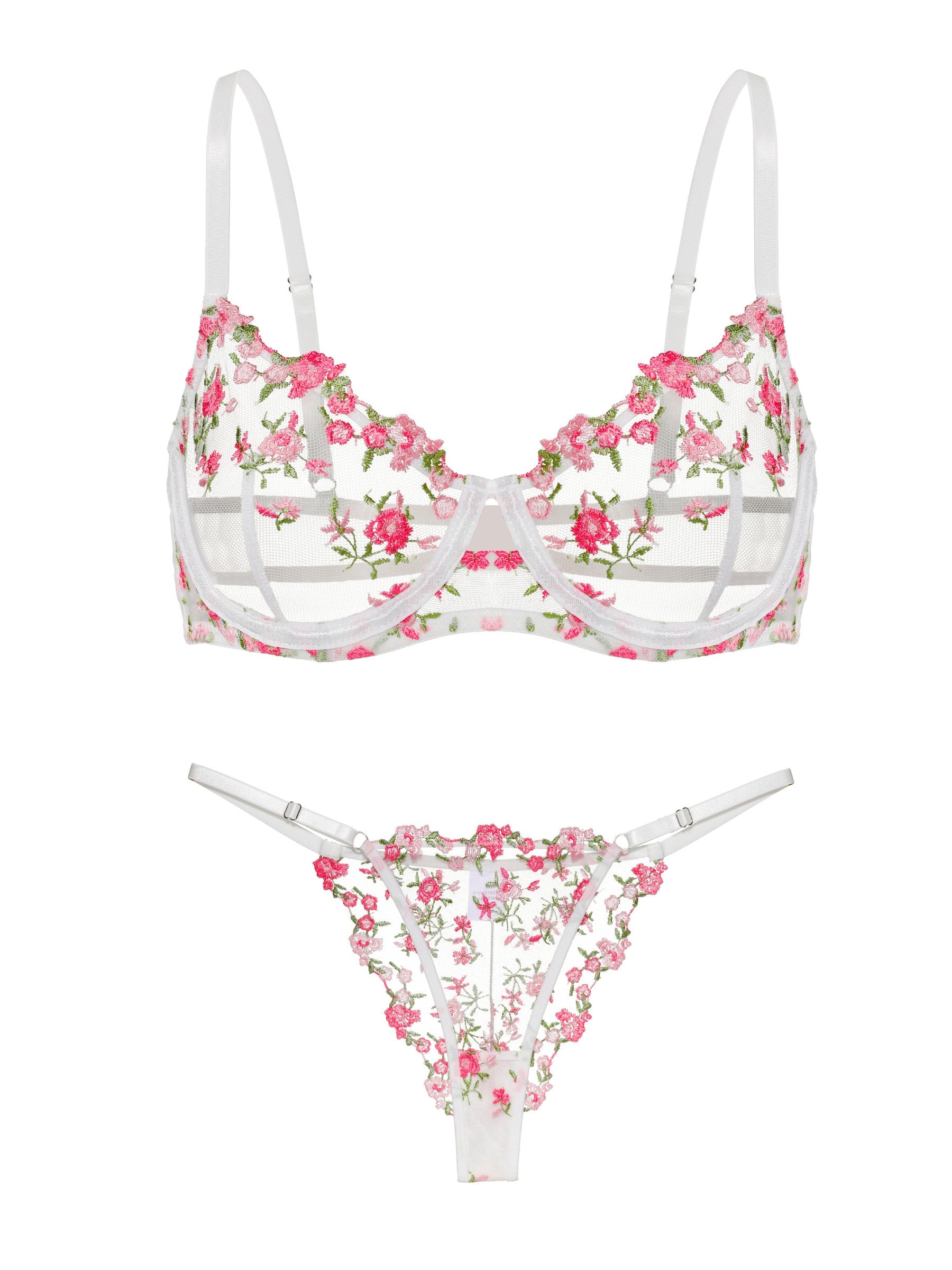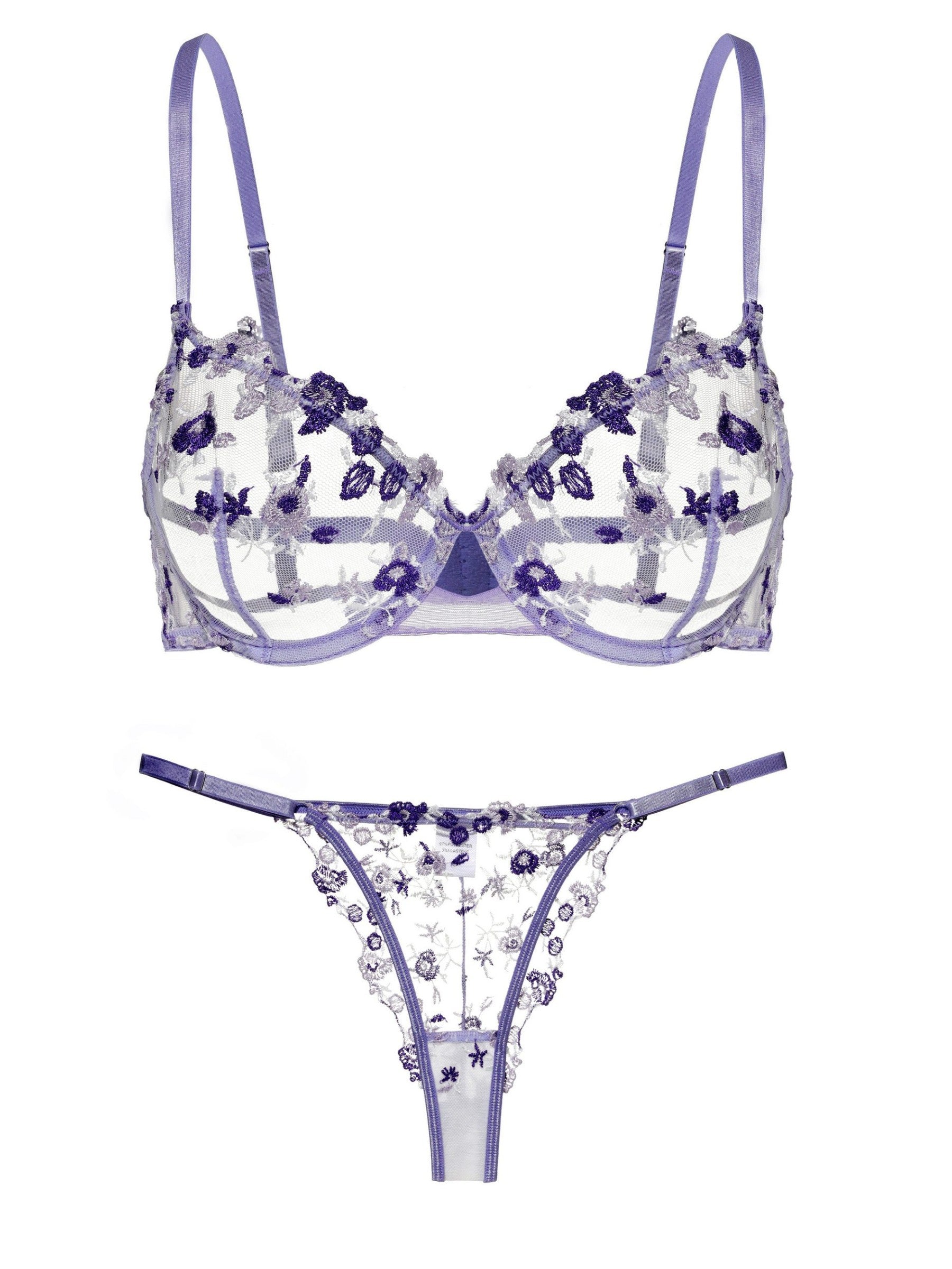 Verleihen Sie Ihrer Garderobe einen Hauch von Luxus mit diesem Push-up-Dessous-Set. Der bestickte BH und der Tüll-Tanga vereinen Komfort und Stil, während das feine Blumenmuster und das transparente Mesh für eine moderne, elegante Optik sorgen.
