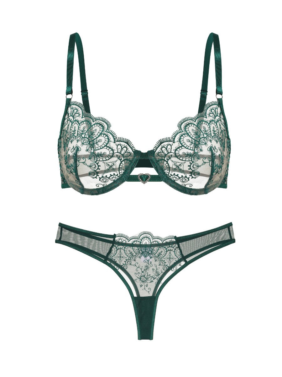 Betonen Sie Ihre Kurven mit diesem verführerischen Dessous-Set! Der Push-Up BH mit verstärkter Polsterung zaubert ein atemberaubendes Dekolleté, während transparentes Mesh & Stickereien für Luxus sorgen. Der passende Tüll-Tanga bietet Komfort & Eleganz – perfekt für besondere Anlässe.