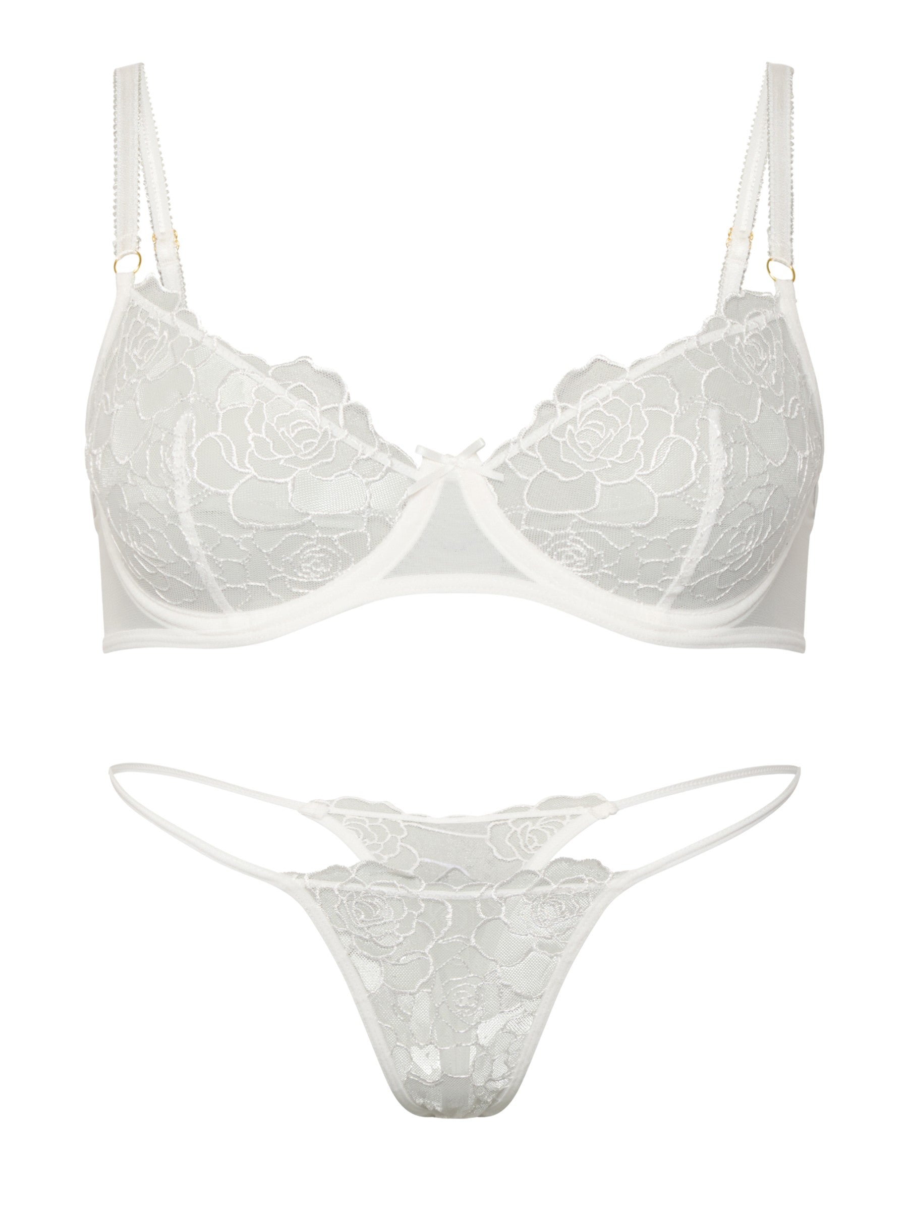 Elegantes Dessous-Set mit Bügel-BH und filigranem Tanga aus feiner Spitze. Für sicheren Halt, edle Silhouette und feminine Details – perfekt für stilbewusste Momente und besondere Anlässe.
